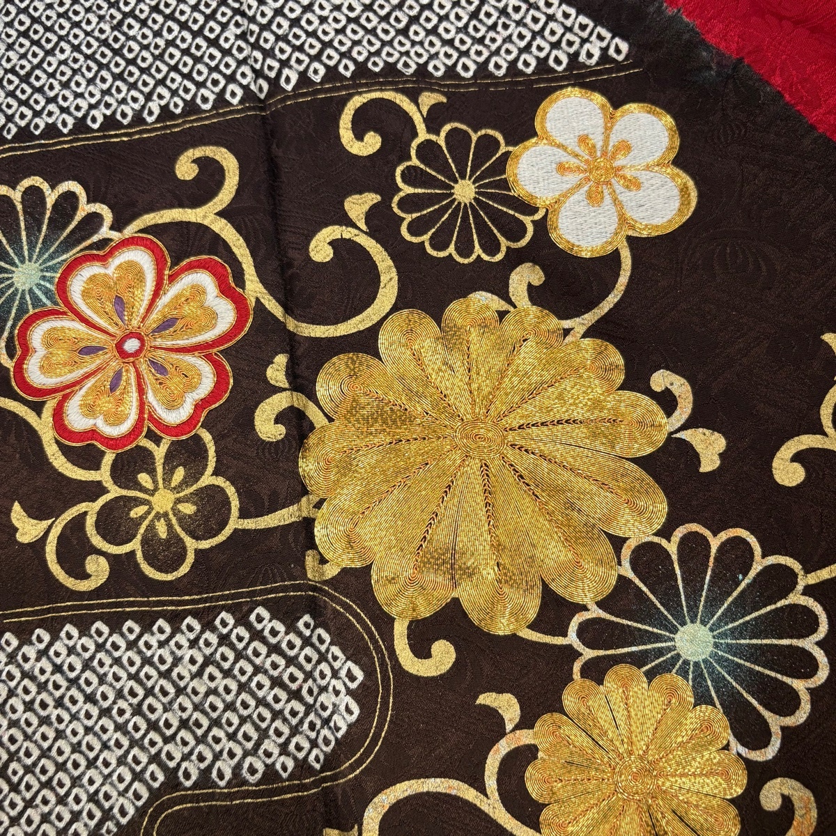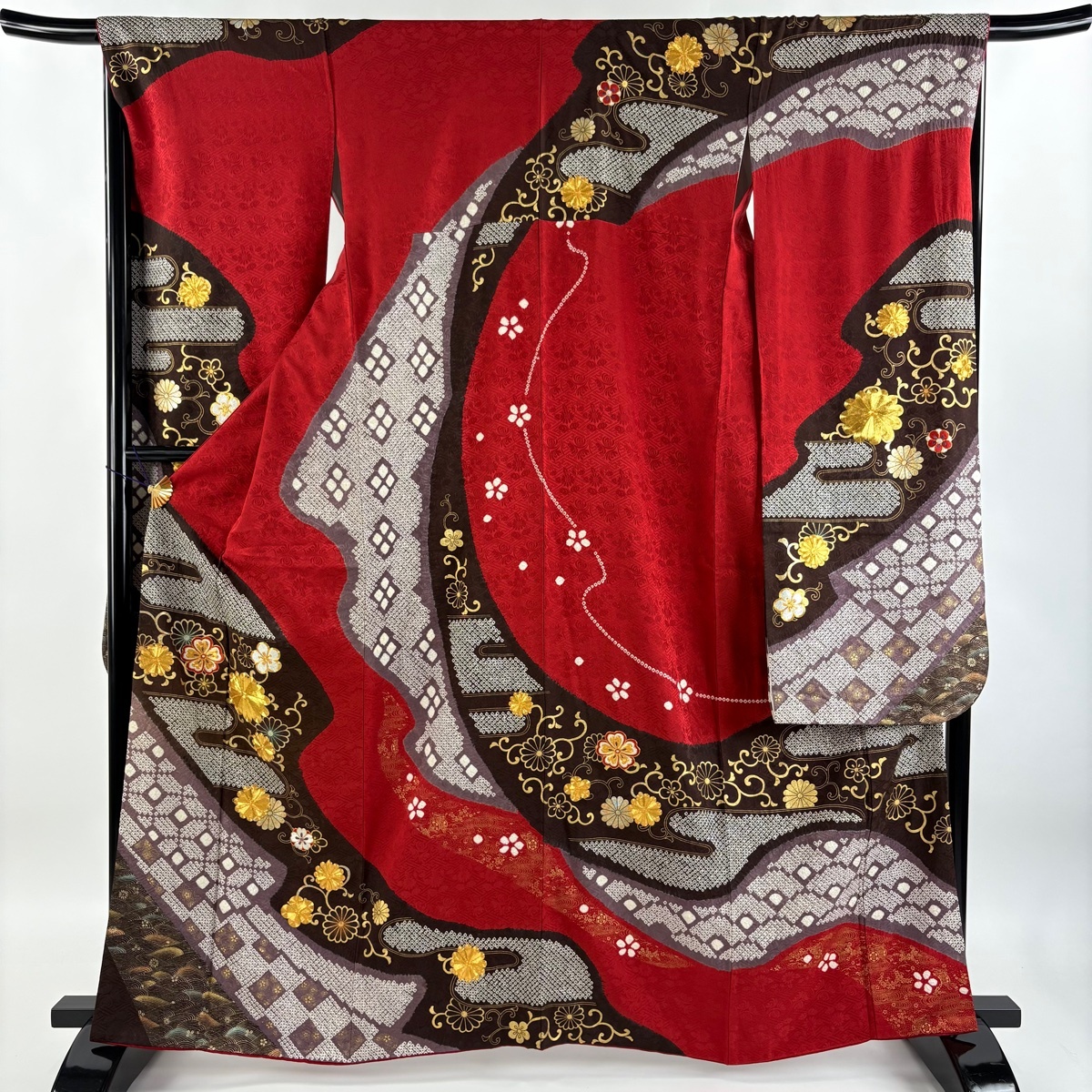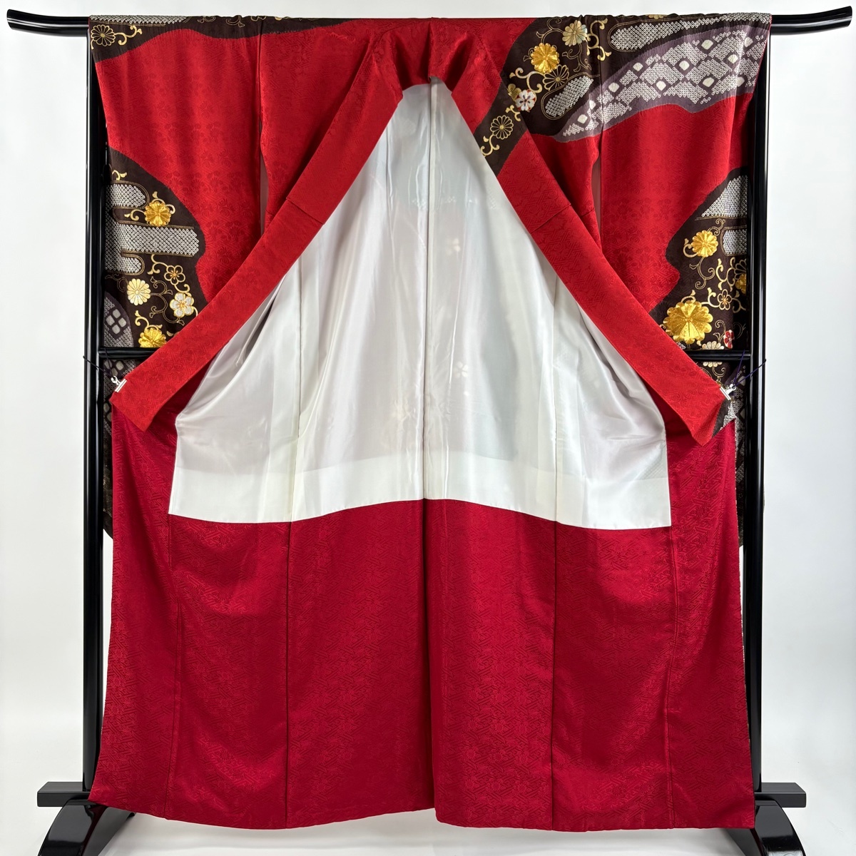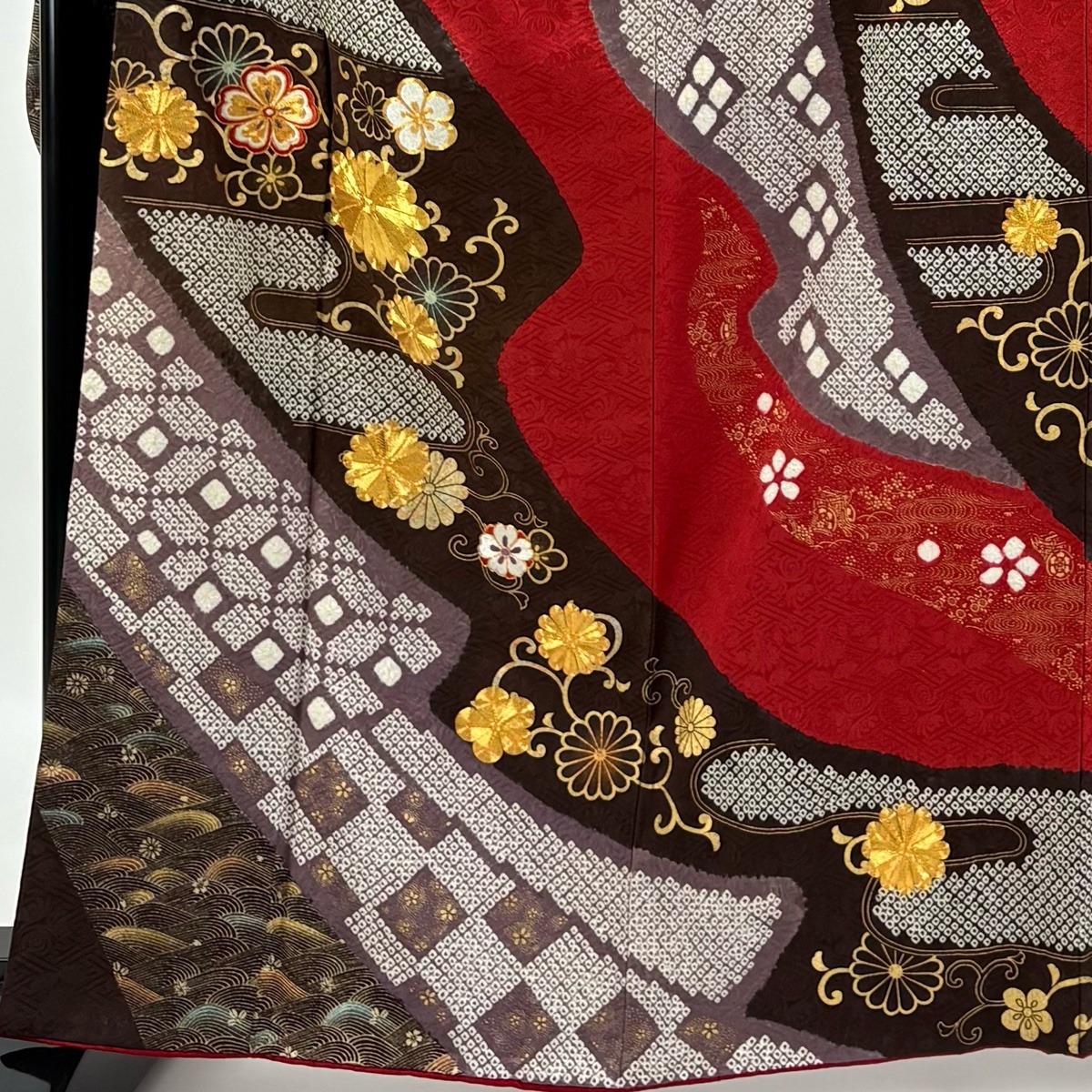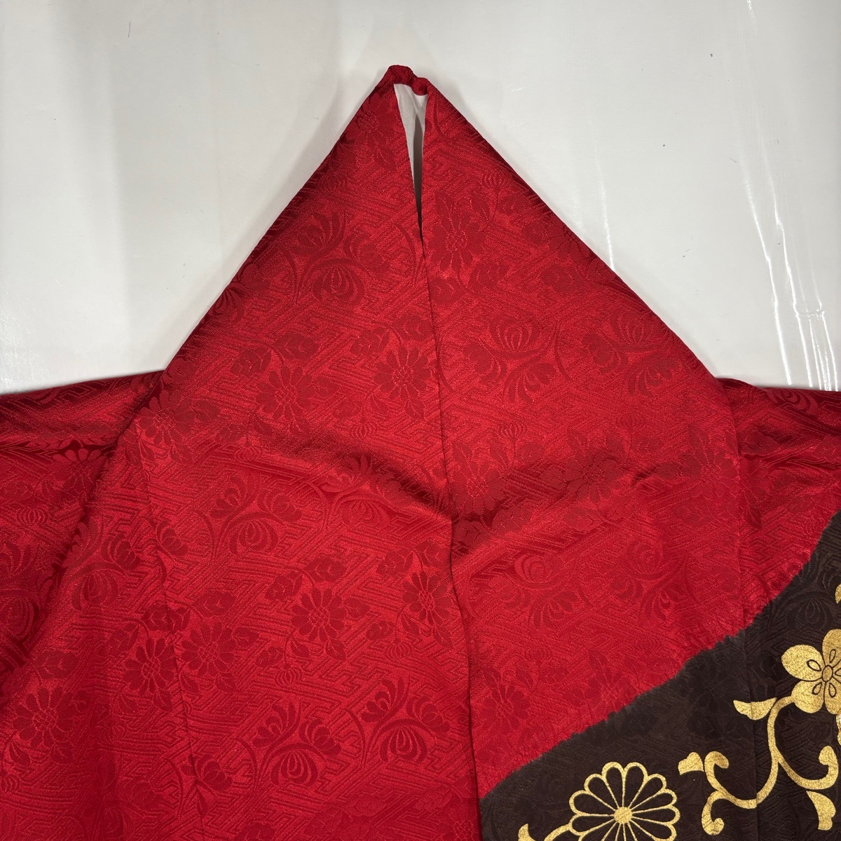 | 振袖 美品 名品 菊唐草 ヱ霞 金糸 絞り 赤 袷 身丈162.5 裄丈67 M 正絹 【中古】 |