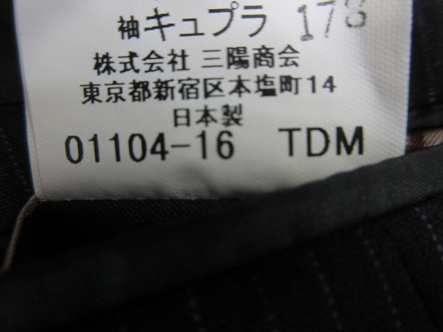 【素材】表地 羊毛/100% 裏地 胴 キュプラ ポリエステル 袖 キュプラ