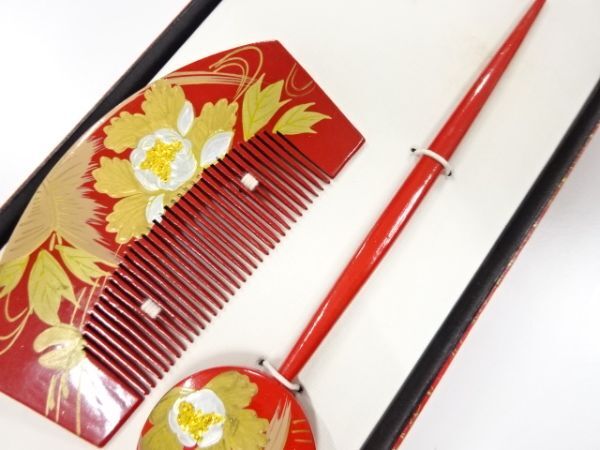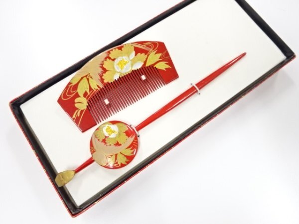 ys7508815; 漆塗り蒔絵 櫛・簪セット【アンティーク】【着】