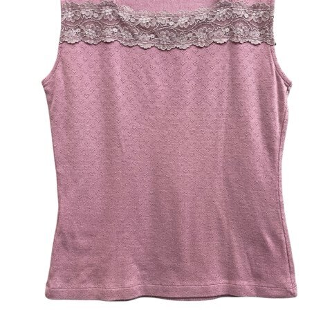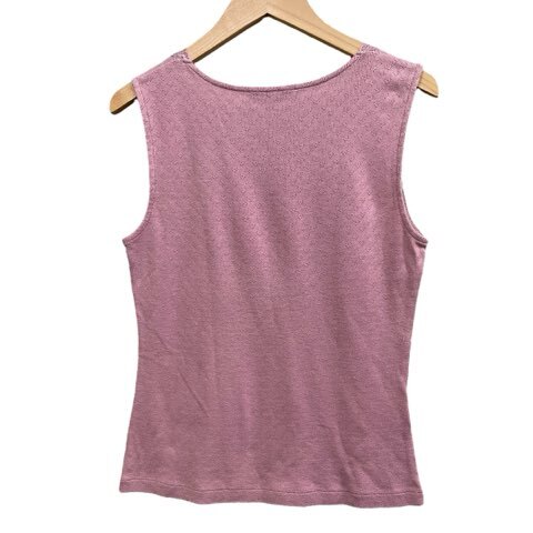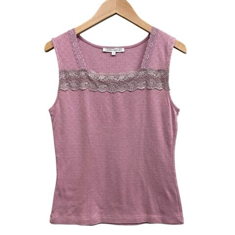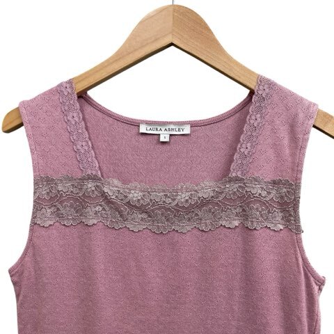 ローラアシュレイ LAURA ASHLEY タンクトップ ノースリーブトップス レース花柄 伸縮 透かし編み ピンク系 サイズS レディース