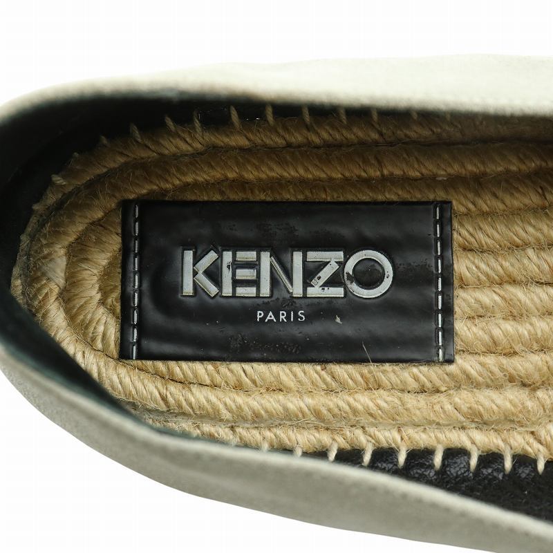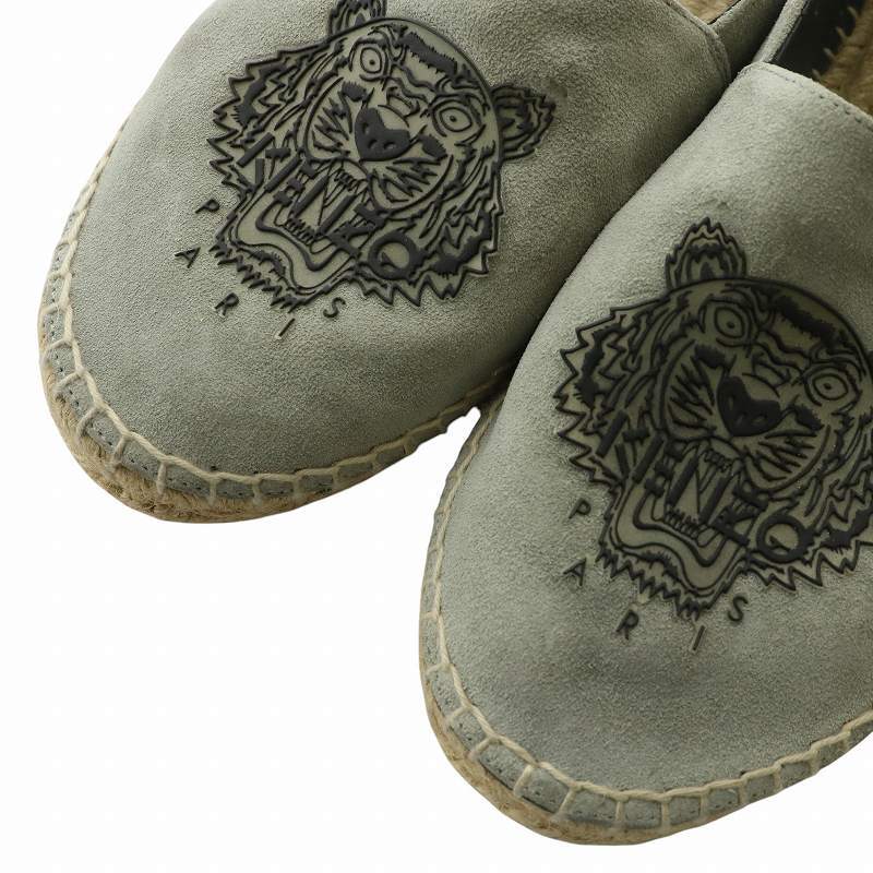 ケンゾー KENZO スリッポン スエード エスパドリーユ ラウンドトゥ 虎柄 タイガー ロゴ 38 24cm グレー ベージュ