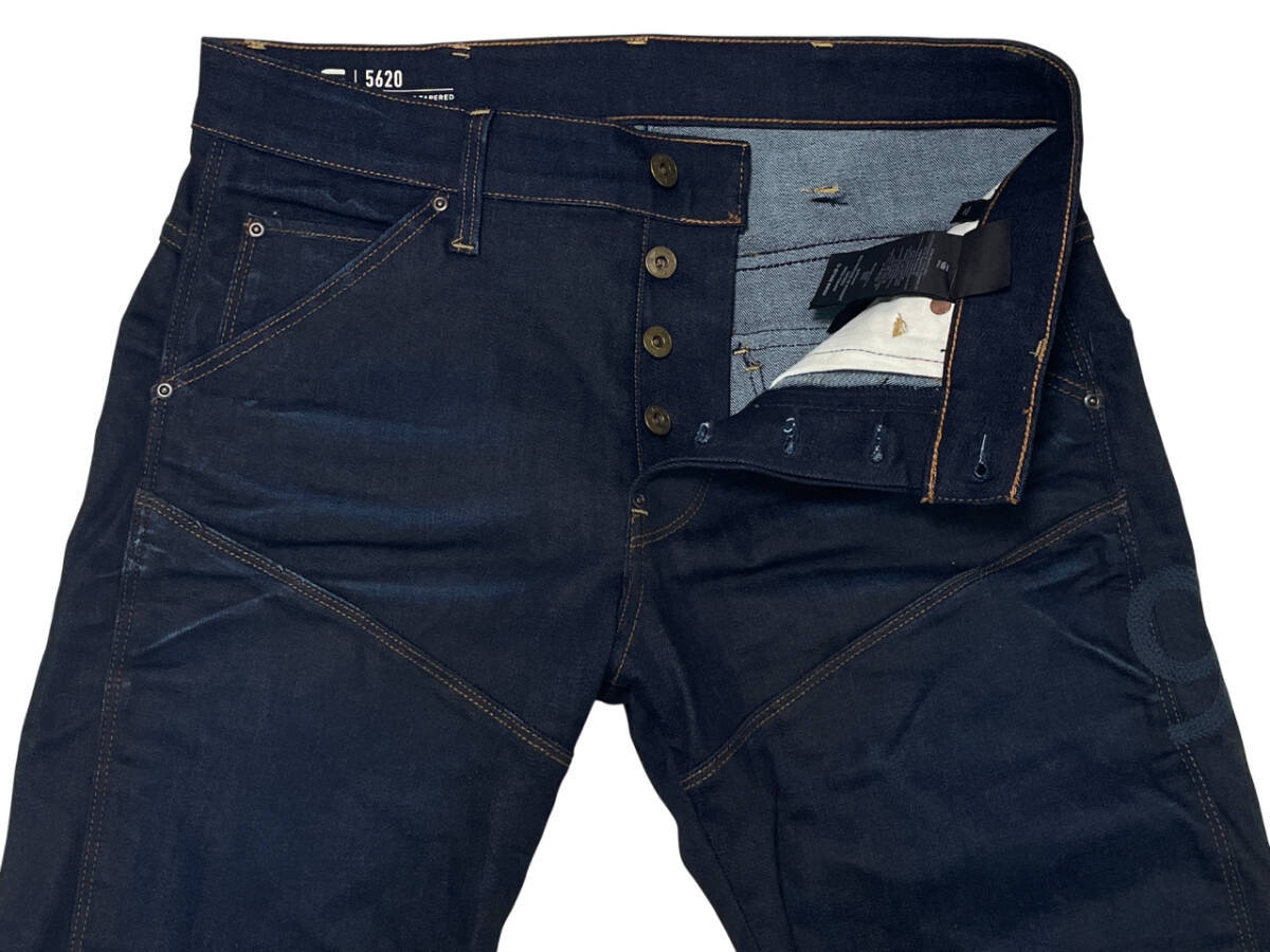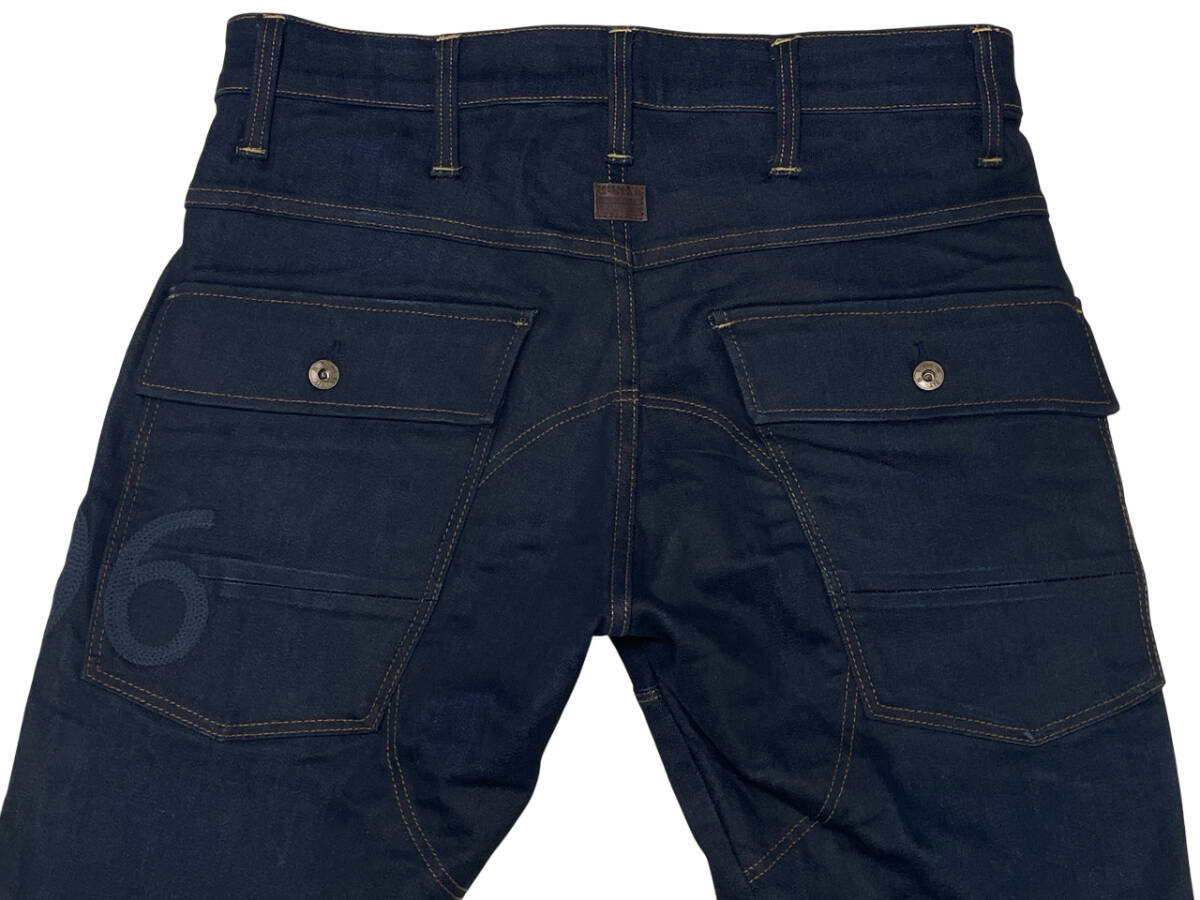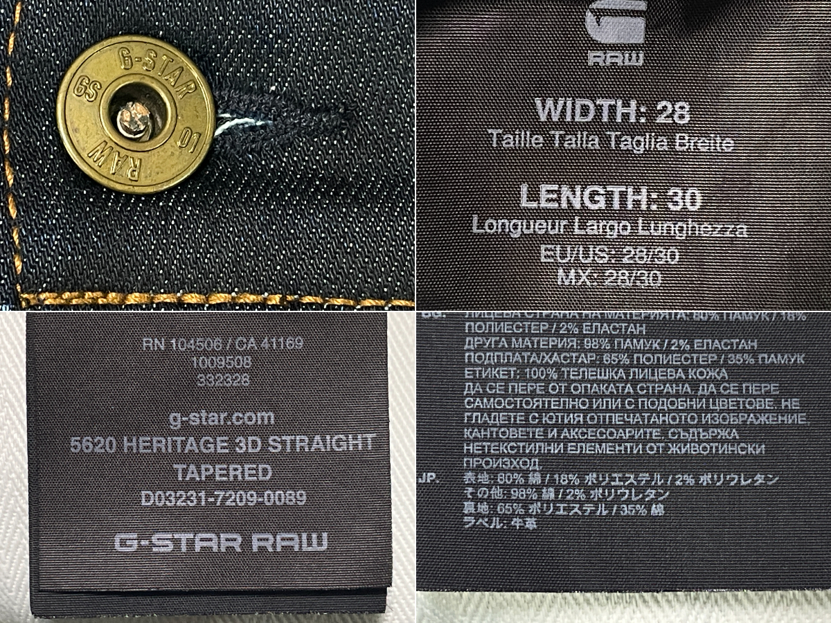 ブランド:G-Star Raw 型 番 :5620 カラー :インディゴ 状 態 :USED G-STAR RAW 5620 HERITAGE 3D STRAIGHT TAPERED デニムパンツです。 定番人気の立体裁断モデル 3D STRAIGHT TAPERED です。96刺繍、特殊なむら染め、染色加工が施されているモデルです。 ストレッチデニムのため快適な着用感です。着こなしの幅が広いアイテムです。 色も濃く、状態が良く、これから長く付き合える品です。お探しの方お勧めの1本です。 ■サイズ:製品表記 W28L30 ■サイズ:実寸(平置き) ウエスト 40.5cm (×2=約81cm) W32相当 股下 72.0cm 股上 26.5cm もも幅 29.0cm すそ幅 17.0cm | ||