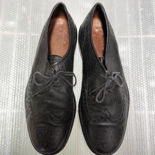 | 商品説明 | ドイツ老舗★シオックス/Sioux★本革/オールレザー/ウイングチップ【9G/27.5/黒】ビジネス/ドレスシューズ/Germany SHOES/boots◆b8C19 (ORIGINAL TITLE) ※商品情報について※ 上部に表示されております【アイテム】・【表記サイズ】などの各項目は、商品カテゴリ振り分けの際に自動で表示される大まかな情報となっており、商品タグなどに記載されている正式な情報と一部異なっている場合がございます。 大変恐縮ではございますが、ご購入の際は下記の詳細情報や商品画像のご確認をお願い致します。 ーーーー ◆ブランド解説◆ シオックス / Sioux 1954年創業。ドイツ発のコンフォートシューズブランドです。日本での取り扱いは少なく、知る人ぞ知るブランドといえます。 ☆ ◆サイズ:9 G(日本サイズ27.5程度) ◆最大甲幅:約11cm ◆アウトソール(全長):約30cm ※採寸の多少の誤差はご了承ください ◆お色:ブラック ◆靴の種類: ウイングチップ(甲に翼を模した「W」型の飾りがあるもの。) ・本革 ・オールレザー(インソール・靴裏にもレザーが使用されています) クラシカルで美しい装飾が魅力の一足! 男らしさがあり、再ブームになりつつあるウイングチップの革靴です。 大変上質な本革が使用されており、遠目からでも高級感の伝わる作りです。 あなたの魅力を高めてくれる素敵なお品です☆ ◆商品の状態◆ 新品ではない為、多少の着用感、小傷、シワはございますが、気になるダメージ等は特に見あたりません。 また、ヒールの磨り減りは比較的少なく、まだまだ履いていただけます。 まだまだ満足して履いていただけるお品です☆ (コンディションに関しましては当方の主観による判断になります。御不明な点がございましたら必ずご質問願います。慎重にチェックは行っていますが、汚れ/傷のわずかな見落とし等は中古品という事でご了承下さい。) 【他にもビンテージ・ブランド物の革靴、ブーツ、ジャケット、パンツ、ワンピース、アウター、バッグ、お洒落家具などを多数出品しています。 過去に出品してしばらく売れていない品は1000円単位の値下げもしておりますので、ぜひご覧ください。 】 <BUZZBERG> |