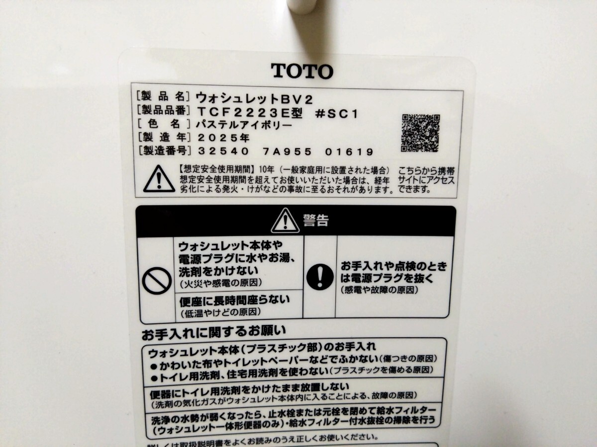 TOTOウォシュレットBV2 TCF2223Eの上蓋です。