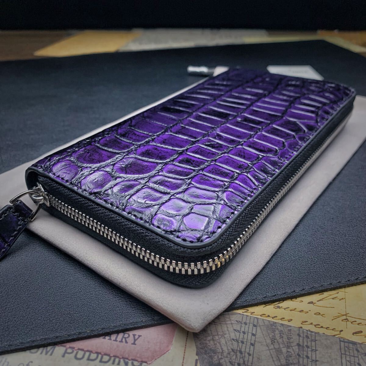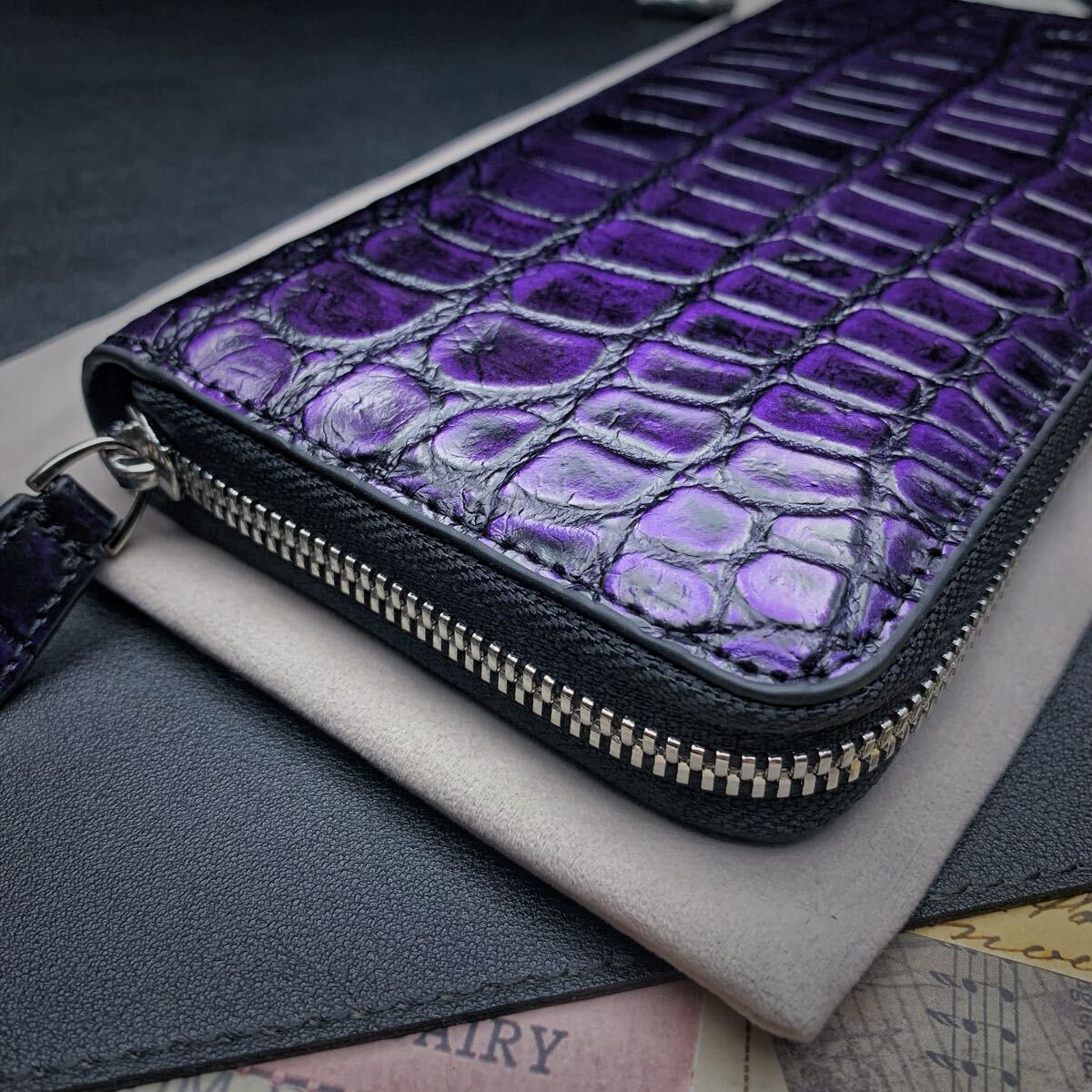 ・クロコダイルと呼ばれている品種のワニ革は人気が高く、独特の模様と凹凸が魅力で、高級ブランド品を中心にクロコダイルが多く使われています。今回はワニ革の代表格である『シャムクロコダイル』のセンターカット腹革のラウンドファスナー財布を出品します。