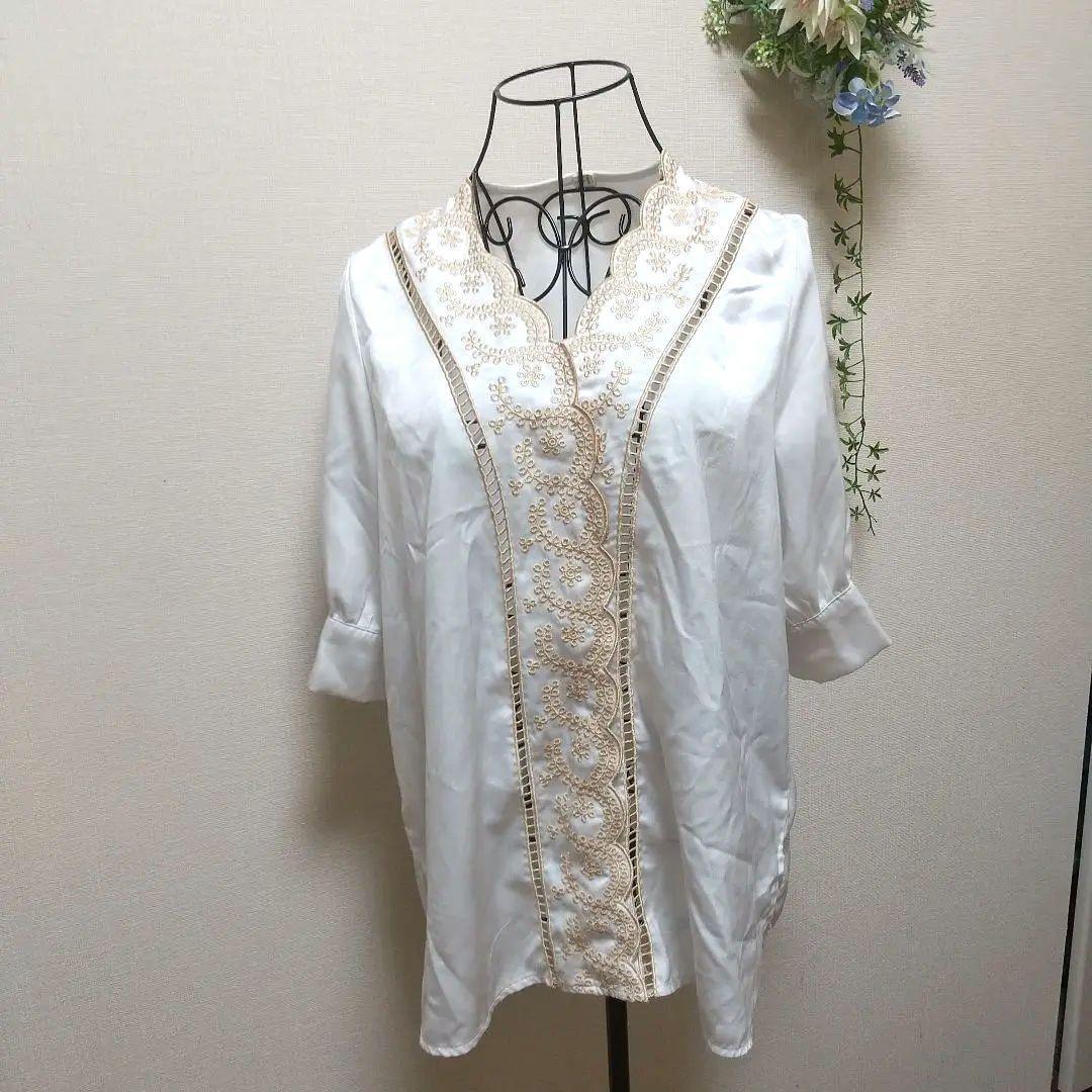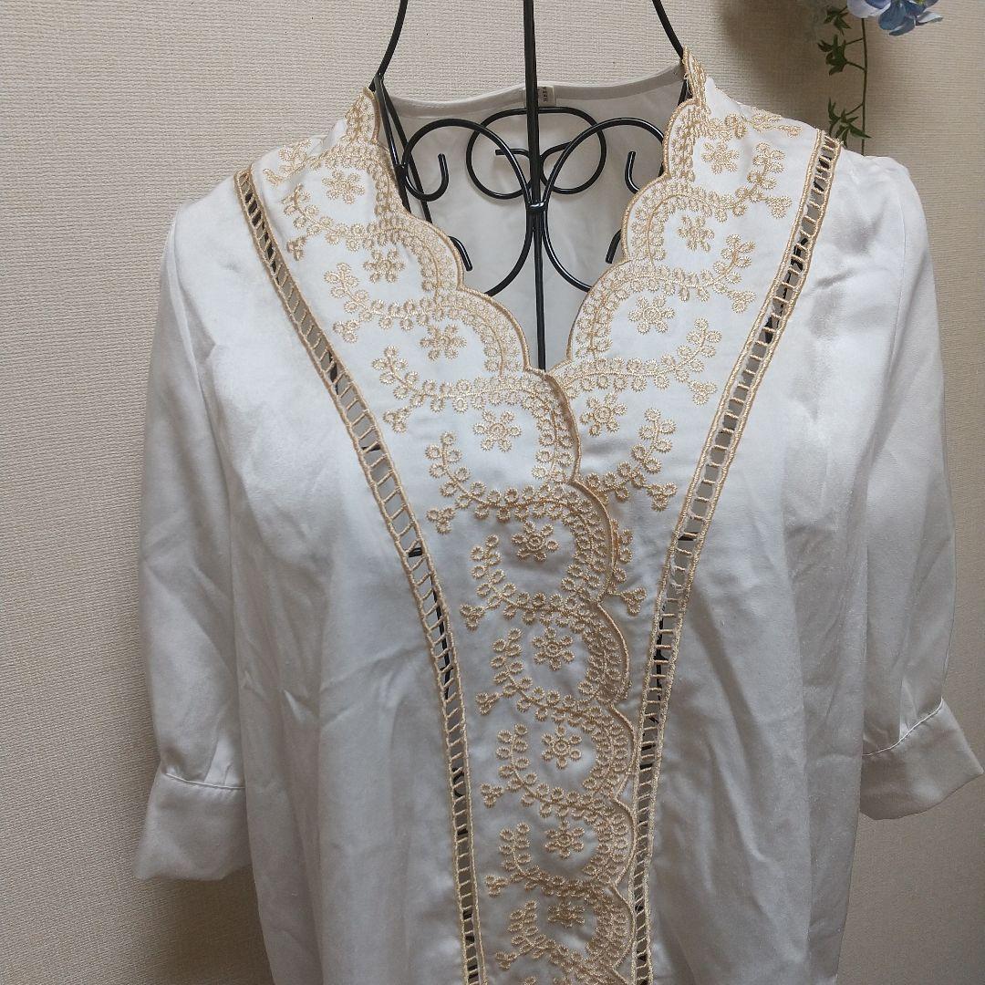 刺繍とゴールドトリムが特徴のホワイトチュニック。
