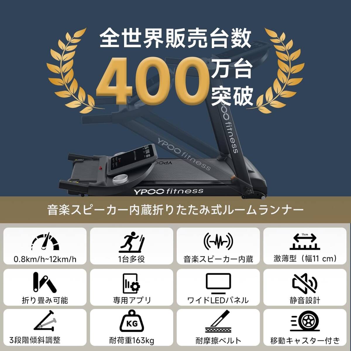 ランニングマシーン ルームランナー 家庭用 静音 【折りたたみ式&見やすい操作パネル】 3段階傾斜 ウォーキングマシン MAX12km/h