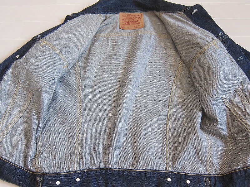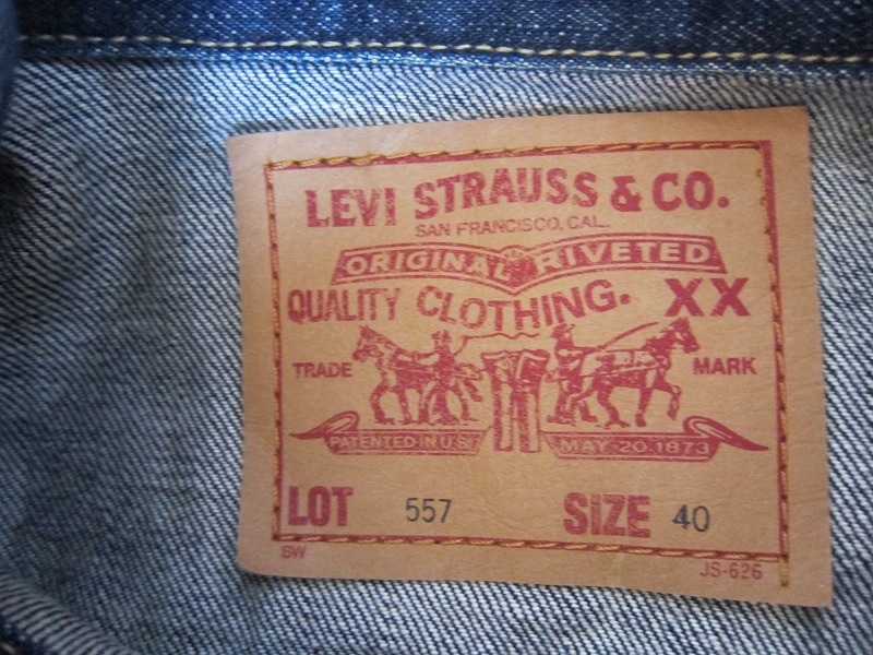 リーバイス 557 ビンテージ復刻デニムジャケット97年香港製になります。サイズ表記は40 実寸 着丈約57cm 身幅約52cm 袖丈(脇下)約49cm 肩幅約48cmです。首元にすれはありますが、その他状態は良好でこれからの色落ちが楽しみな商品です。中古品の為、NC、NRでお願い致します。送料は当方にて負担致します。