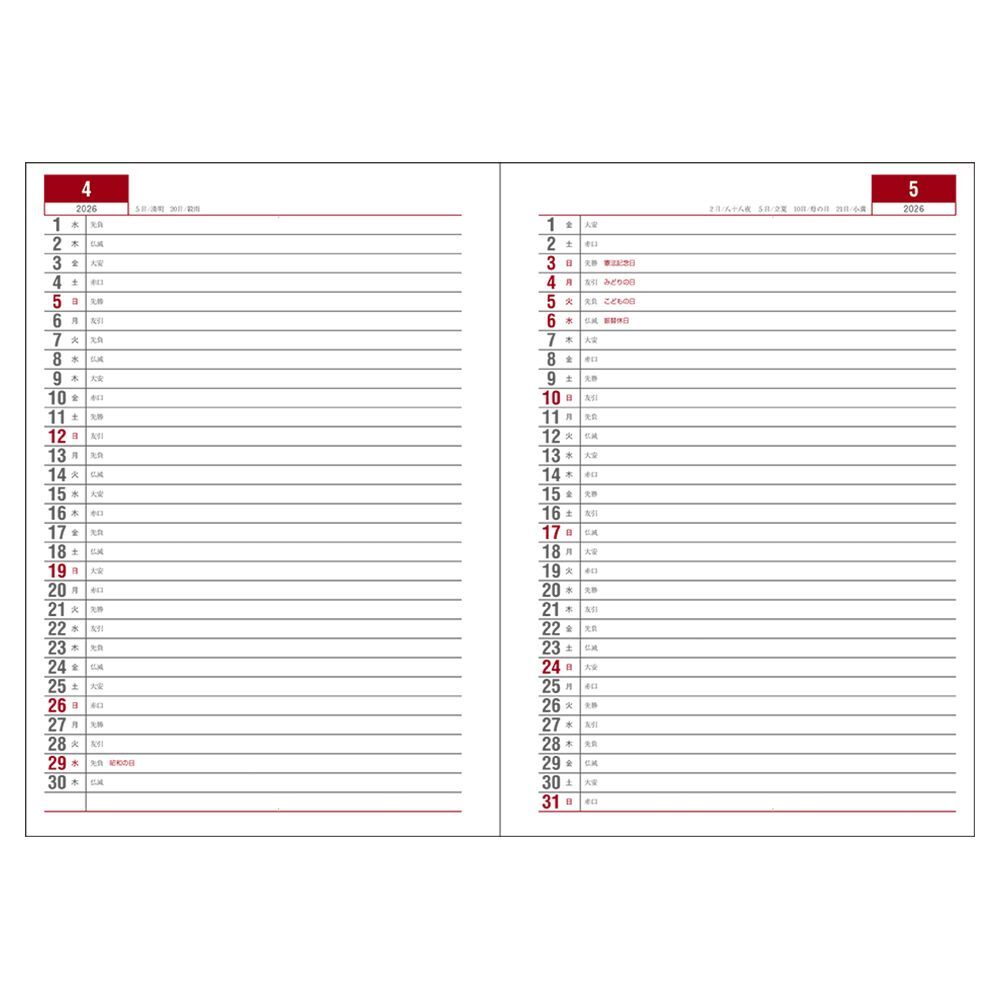 内容:カレンダー・年間スケジュール・月間予定表・週間予定表・横罫・パーソナルノート・年齢早見表