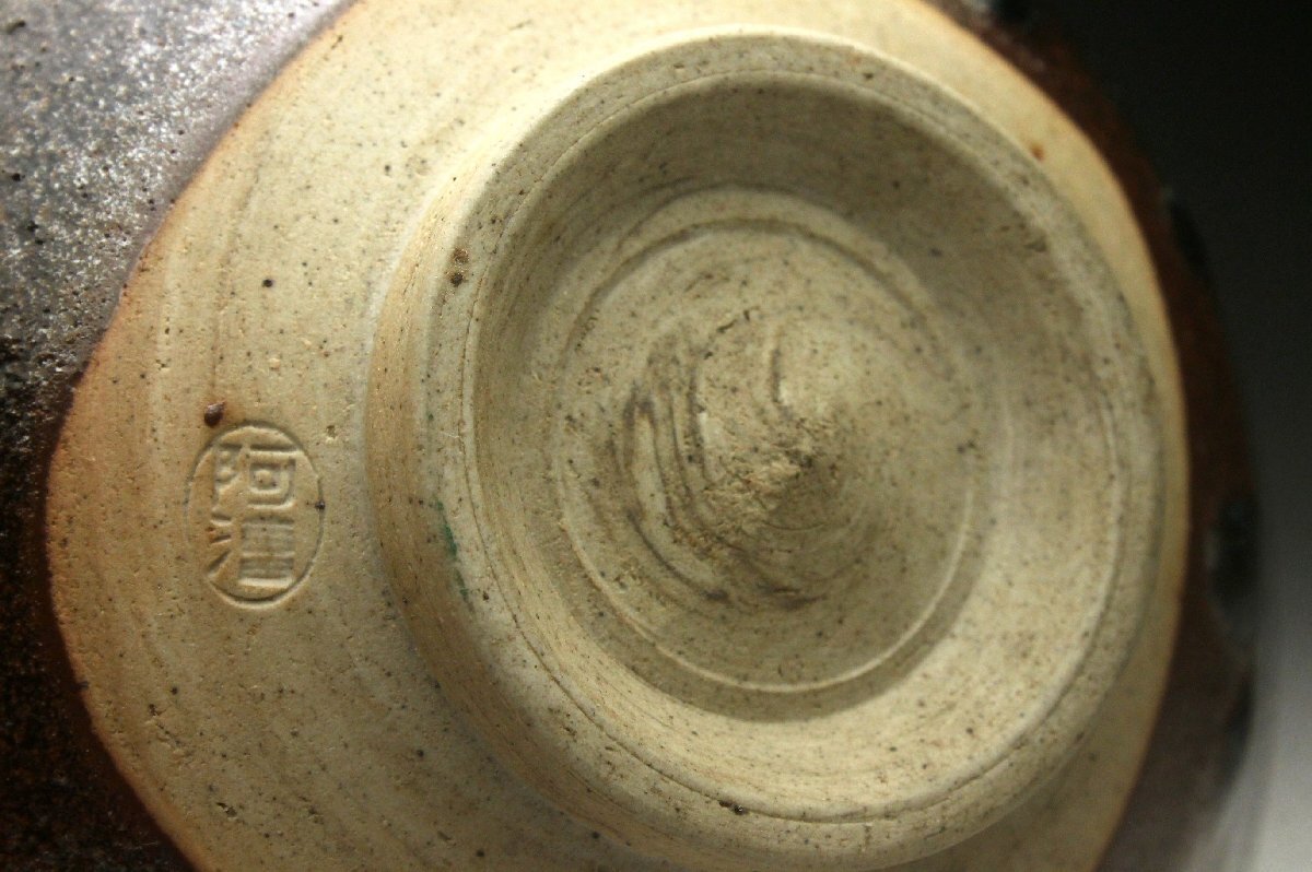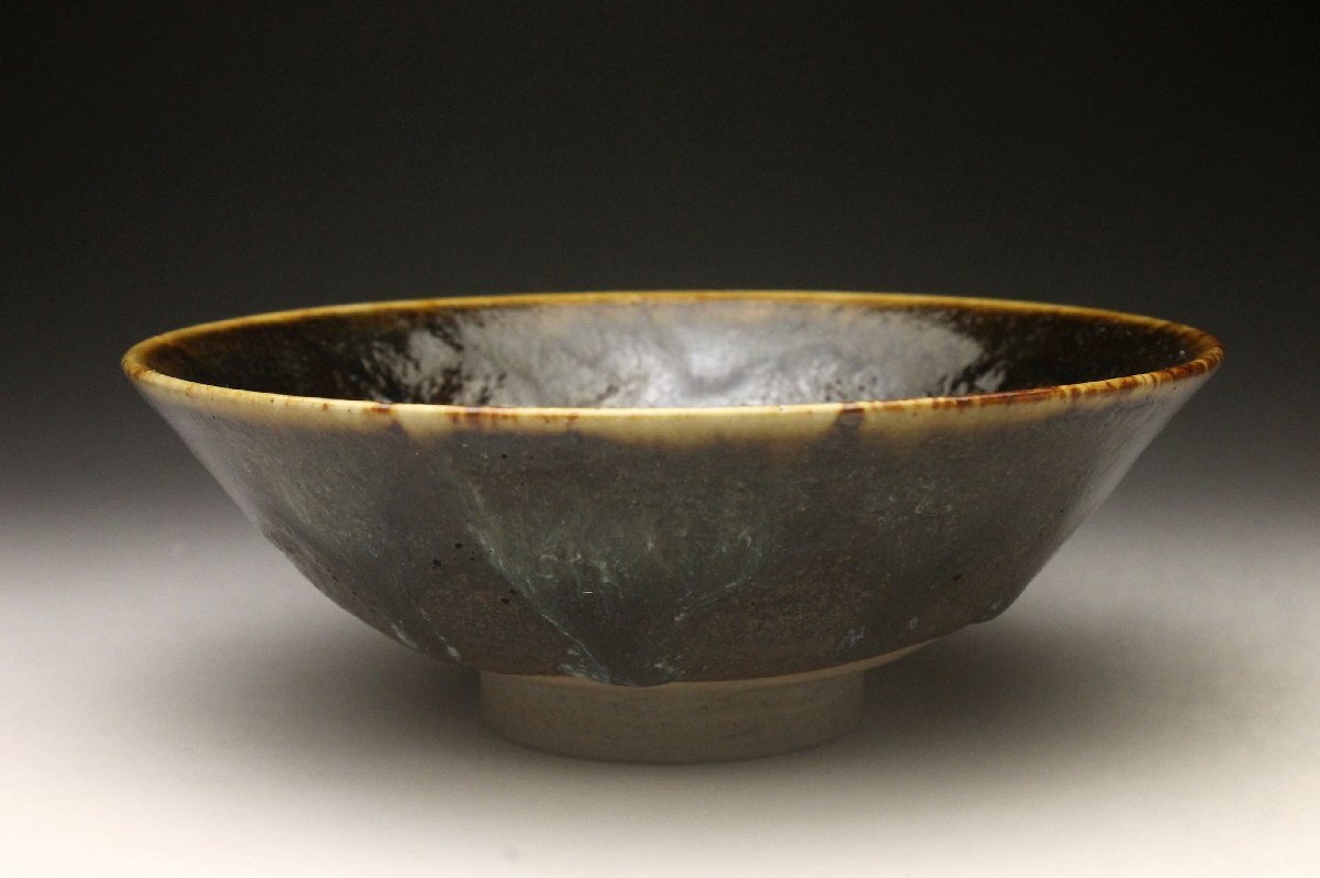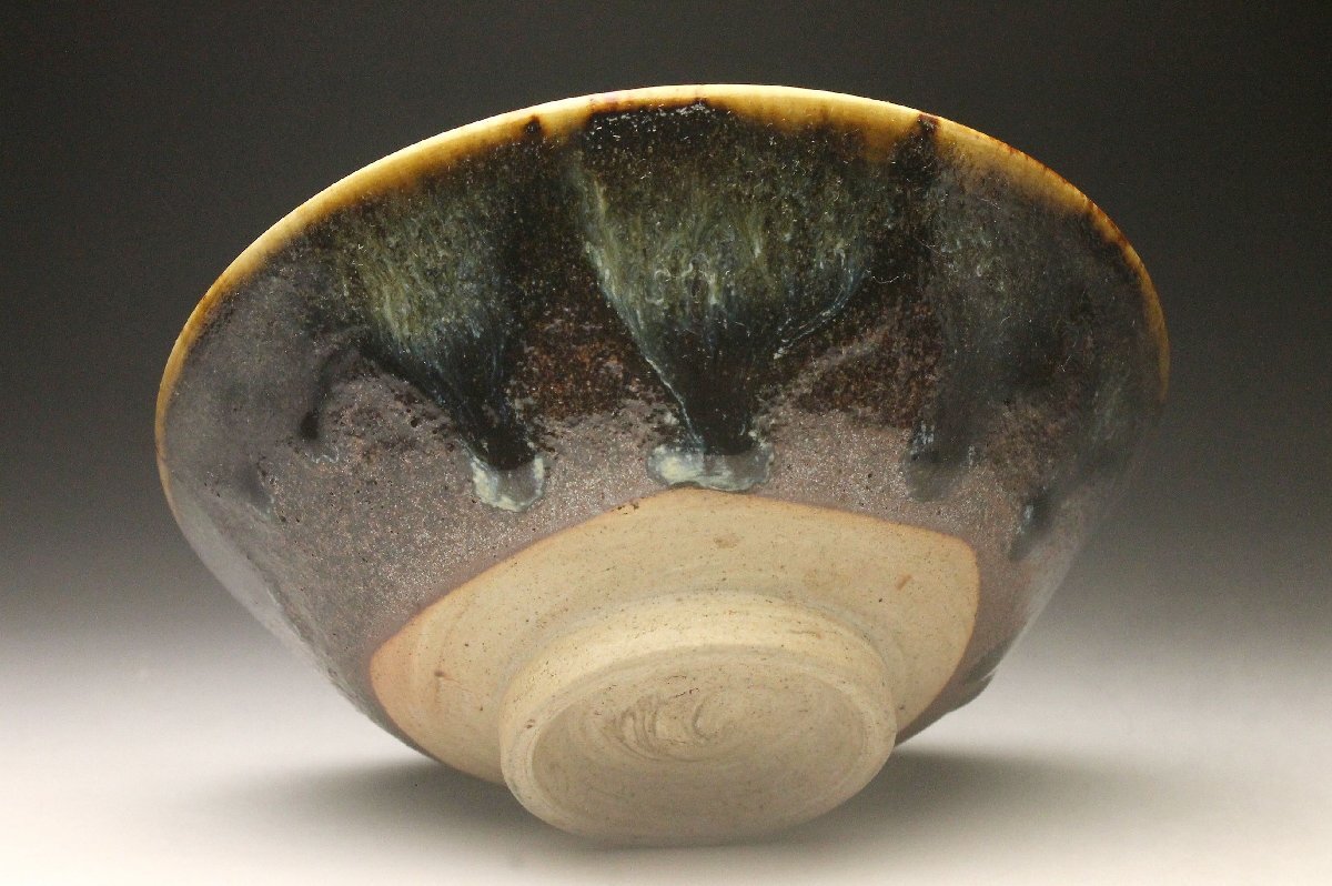 【余韻】 阿漕窯 垂らし釉 平茶碗★茶道具 無傷美品<同梱可>