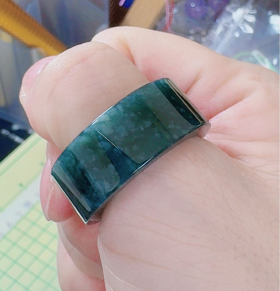 R2-01939 天然本翡翠《本物保証》 藍水翡翠 指輪約26~27号 一点物 希少 縁起物 お守り 魔除け 昇進 金運財運 幸運幸福 パワーストーン