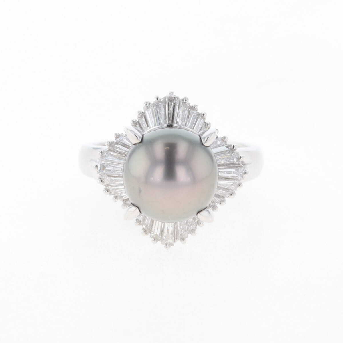 | パール デザインリング プラチナ 指輪 メレダイヤ 真珠 リング 10.5号 Pt900 パール ダイヤモンド レディース 【中古】 |