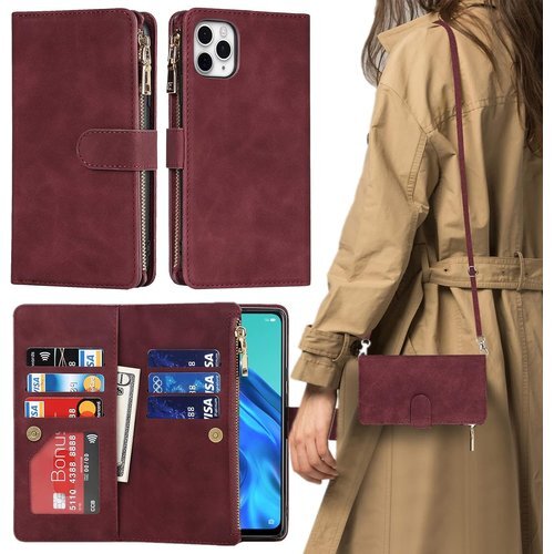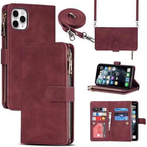 iPhone11 pro ケース 手帳型 ショルダー クロスボディ iPhone11pro アイフォン11 pro ケース アイホン 11proケース iPhone 11 pro ケース アイフォン11pro ケース アイフォン 11 プロ カバー アップル アイホン11プロ 携帯ケース 11プロ アイフォン11プロ スマホケース 手帳型 適用 case iCoverCase ストラップホール付き カード収納 バッグ マグネット 留め具 肩がけ 首掛け 斜め掛け カードケース ファスナー型 ストラップ付き カバー ショルダーケース クロスボディケース カード入れ スマホケース 携帯カバー ワインレッド 257
