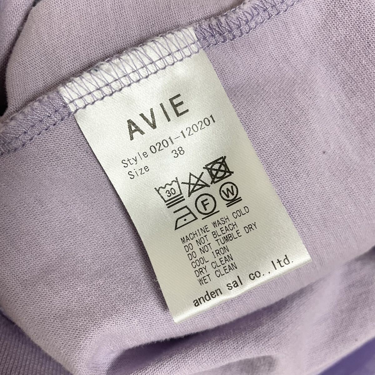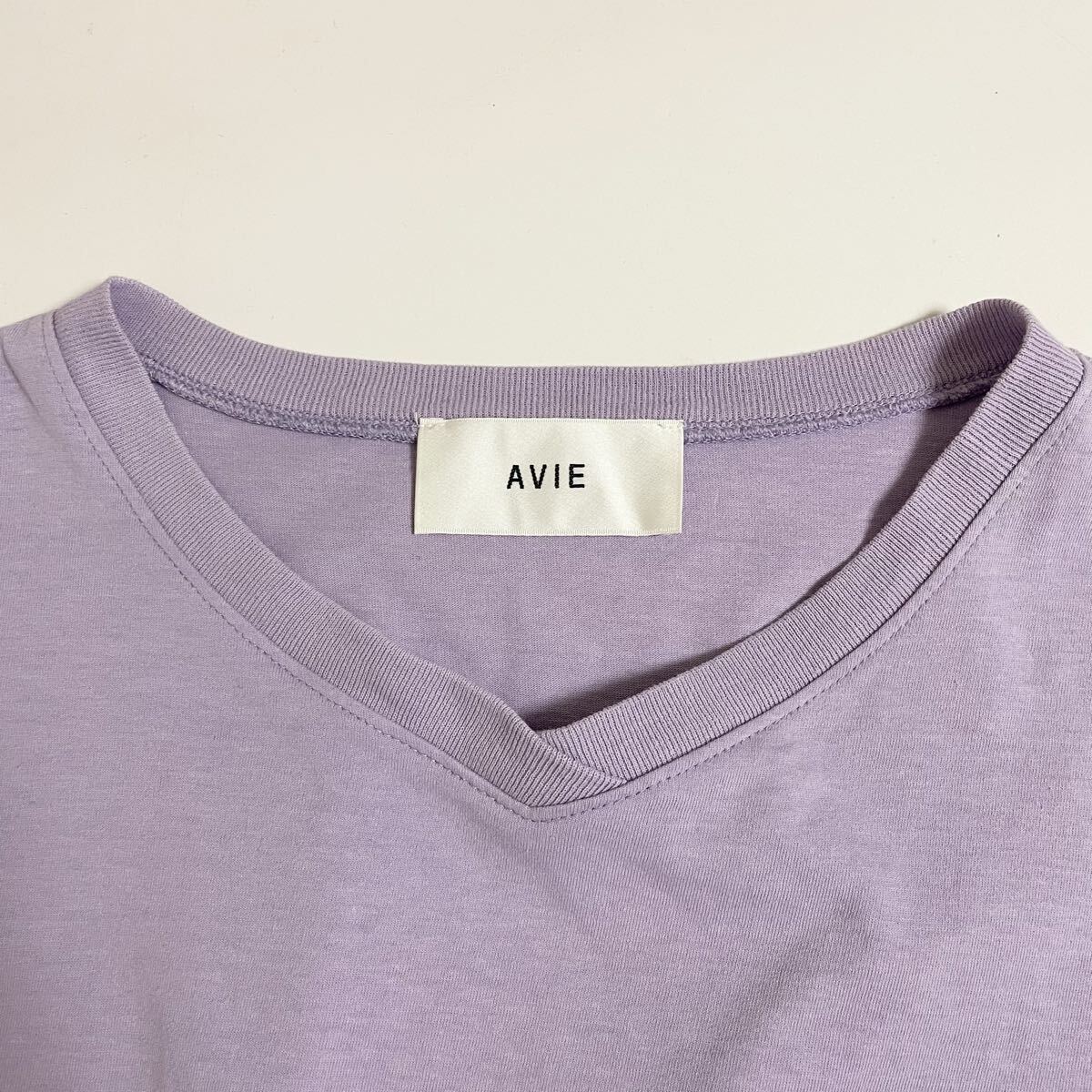 即決☆AVIE アビィ 袖切替 異素材 半袖 カットソー 38 ラベンダー M