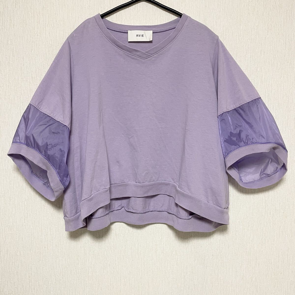 即決☆AVIE アビィ 袖切替 異素材 半袖 カットソー 38 ラベンダー M