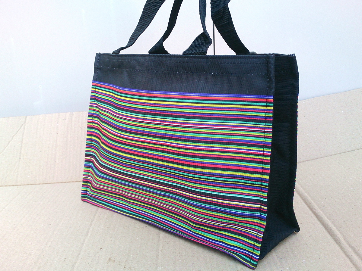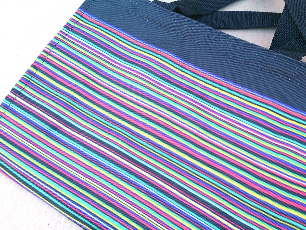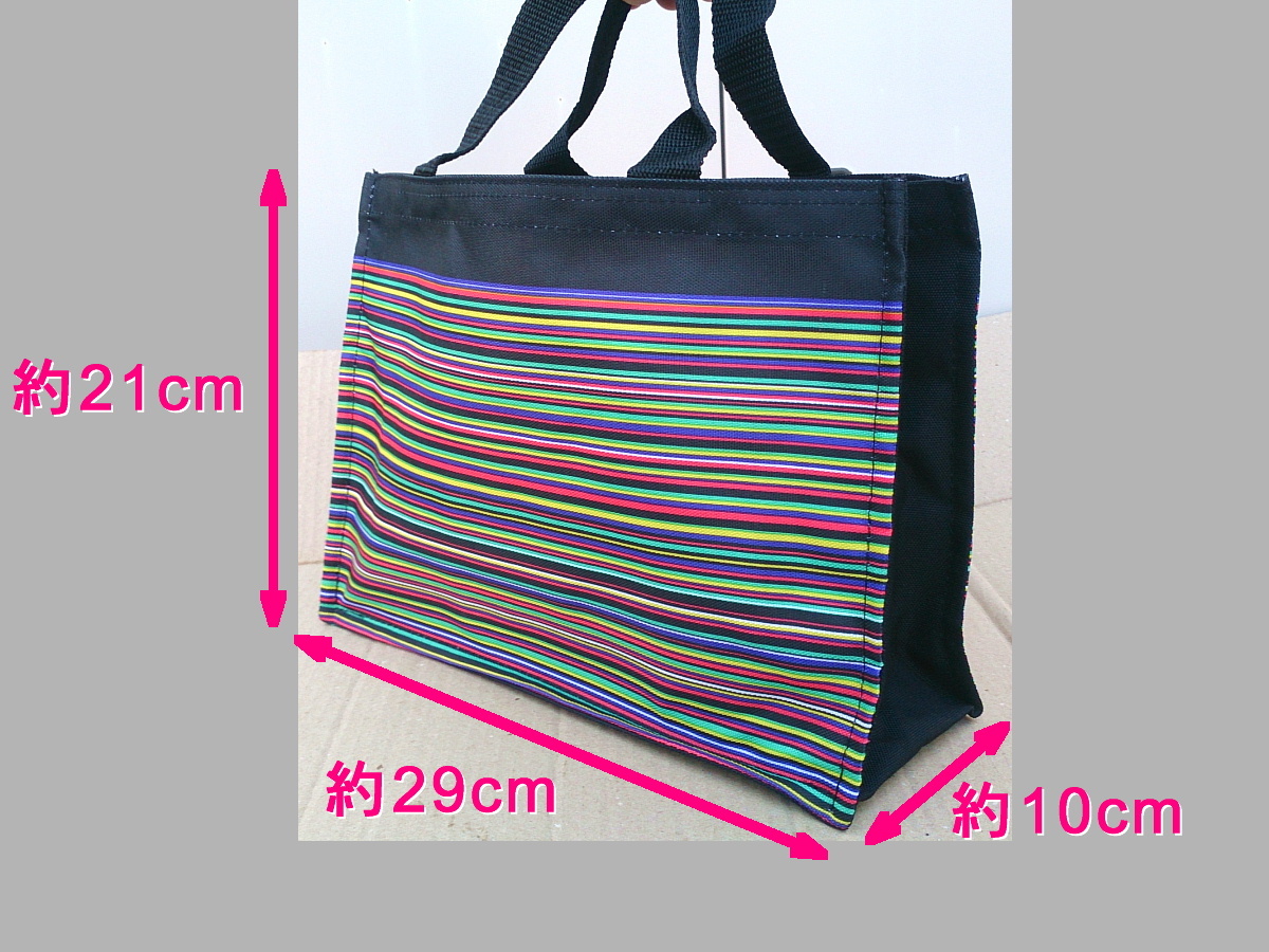 横縞カラー模様が特徴的なデザインの トートバッグです