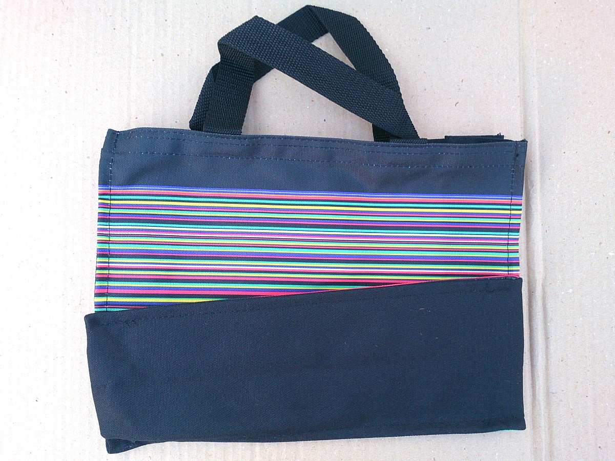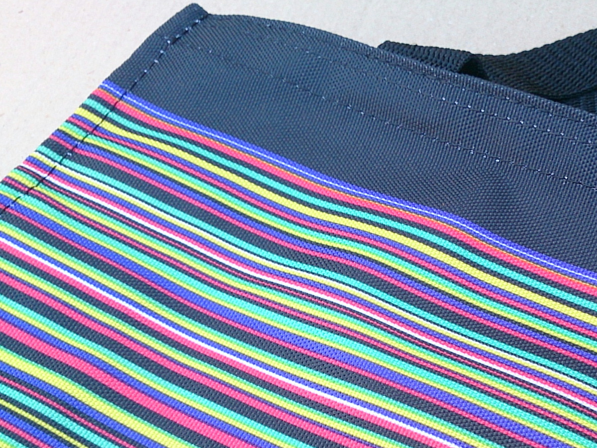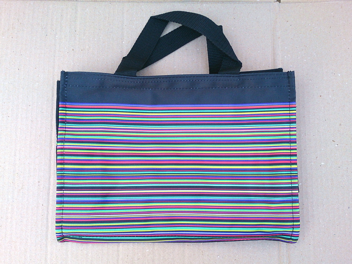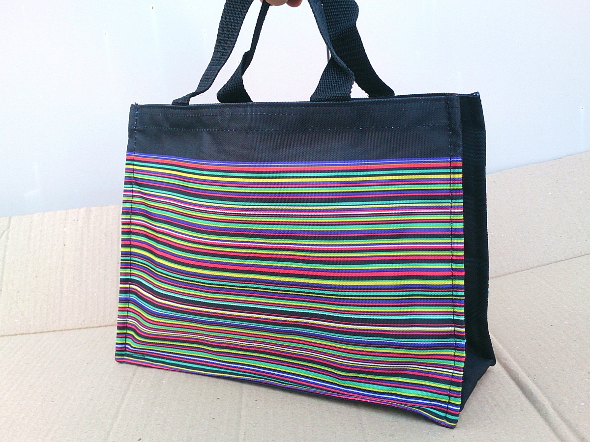 横縞カラー模様が特徴的なデザインの トートバッグです