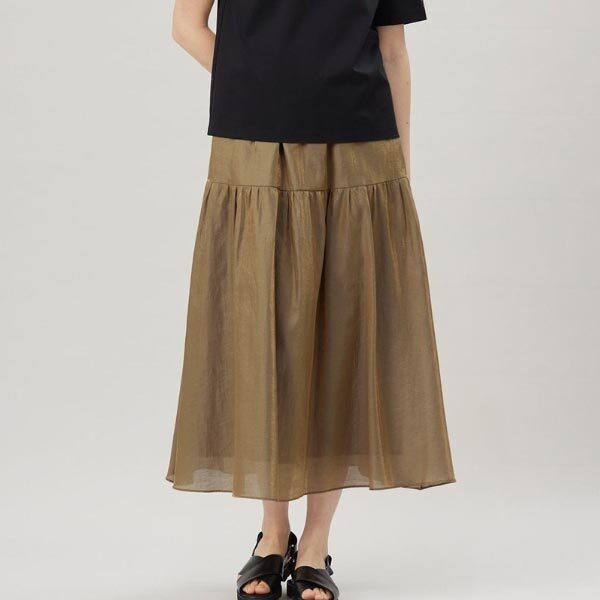 しなやかでメタリックな光沢感を生かしたギャザースカートです。