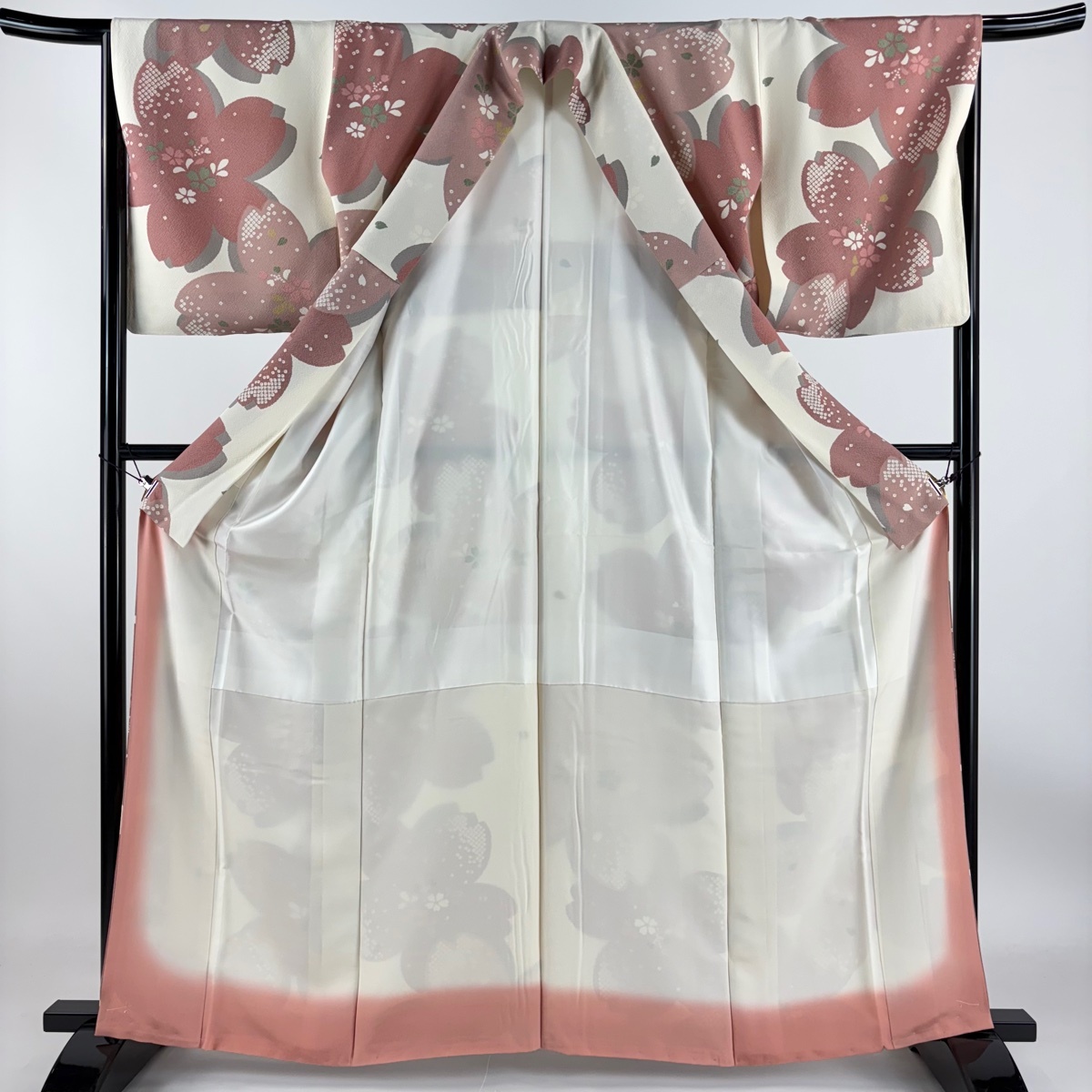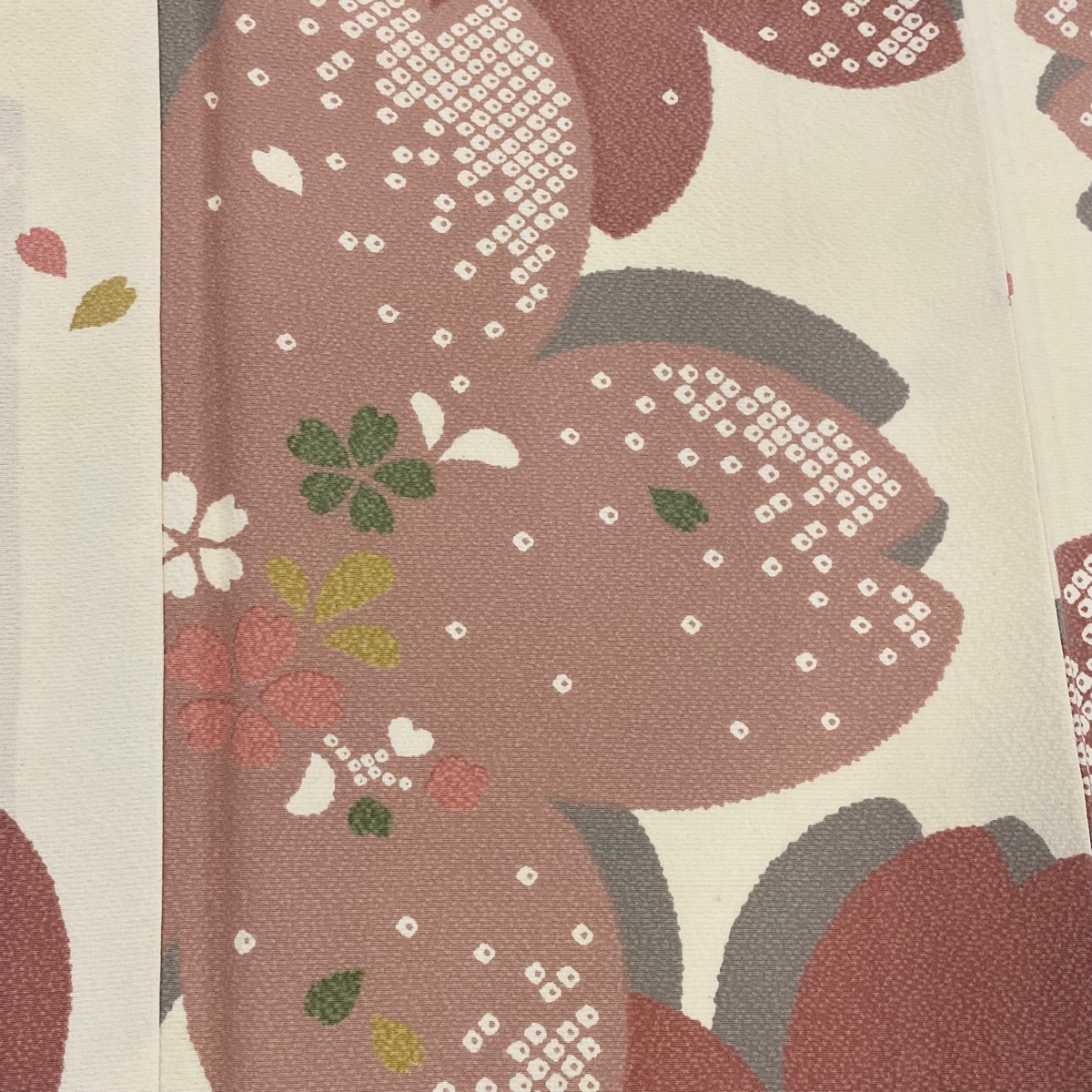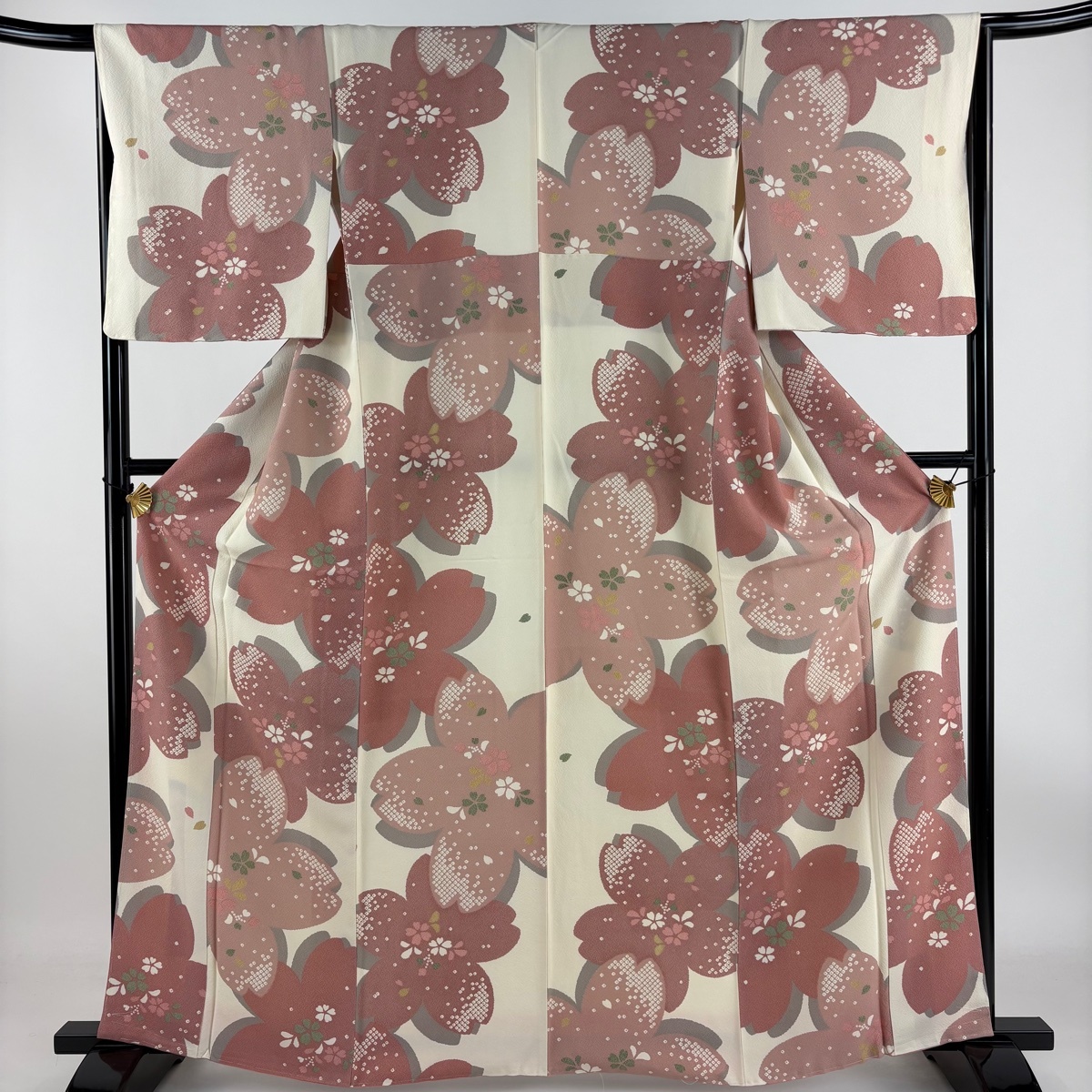 | 小紋 秀品 桜 花びら クリーム 袷 身丈162.5 裄丈66 M 正絹 【中古】 |