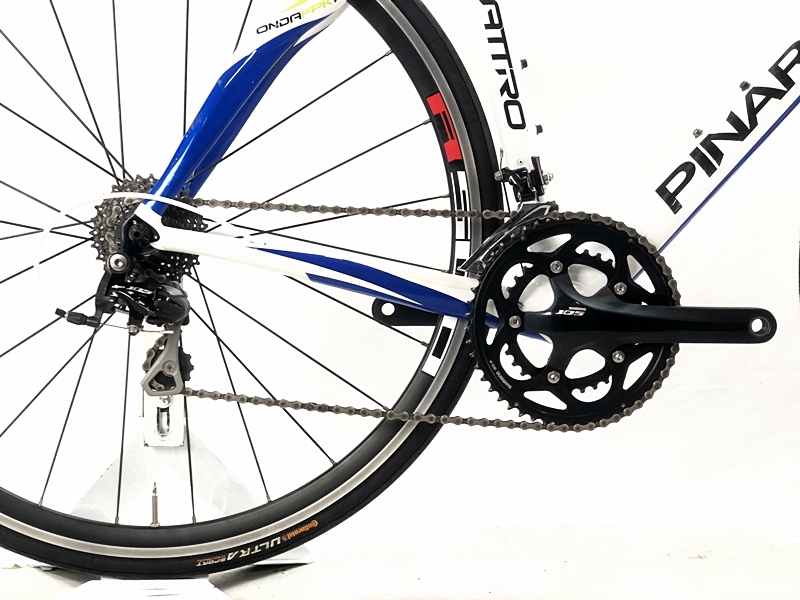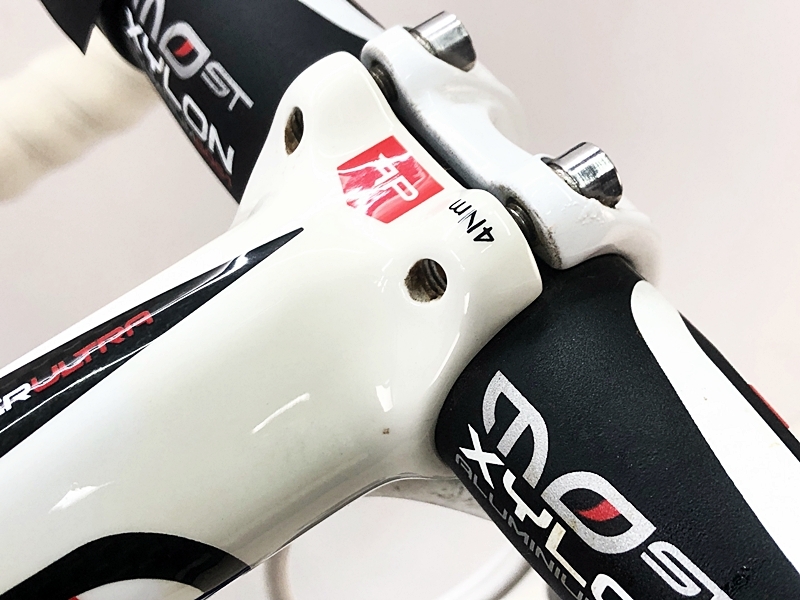 フレーム、その他外観:BB右側チェーンステー寄りにチェーン落ちキズがあります。トップチューブ、ダウンチューブ、ヘッドチューブ、左右シートステー、左右フォークエンド、クランク、リアディレイラー、STIレバー、ホイール、ステム、シートポスト、サドルにキズがあります。ステムに変色が見られます。ヘッドバッチに劣化が見られます。カセットスプロケット、サドル、バーテープに汚れがあります。