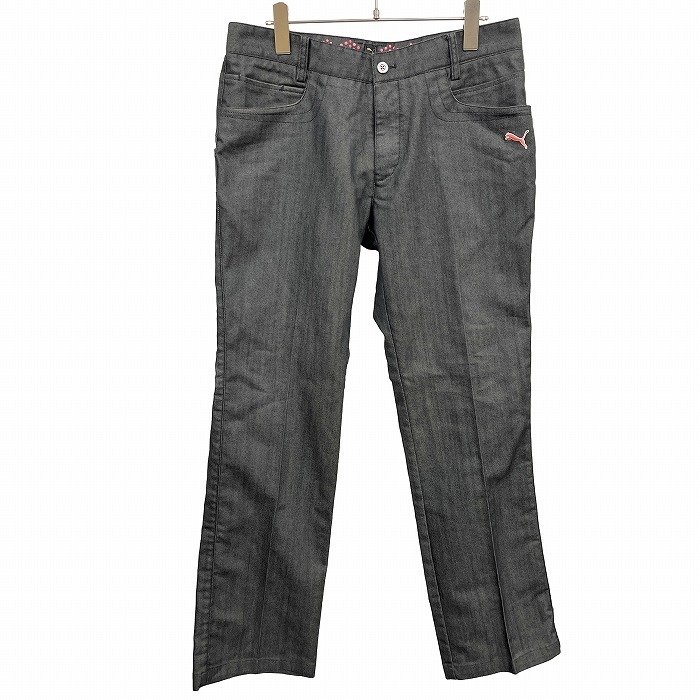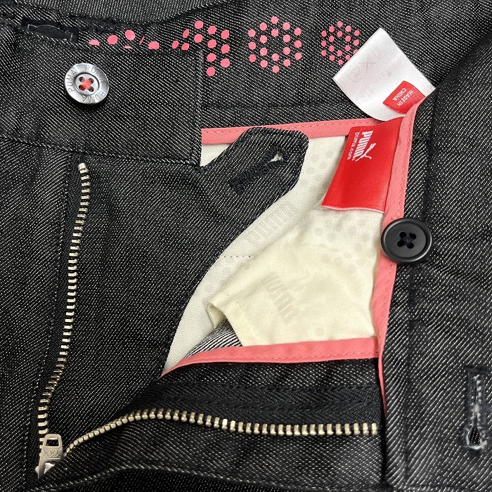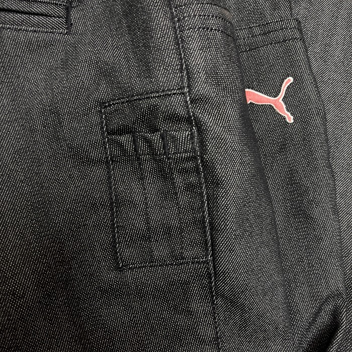 商品タイトル | プーマ PUMA ゴルフ デニム系 パンツ ロゴ刺繍 ストレート ジップフライ 綿×ポリエステル ウエスト82cm ブラック 黒×ピンク メンズ |