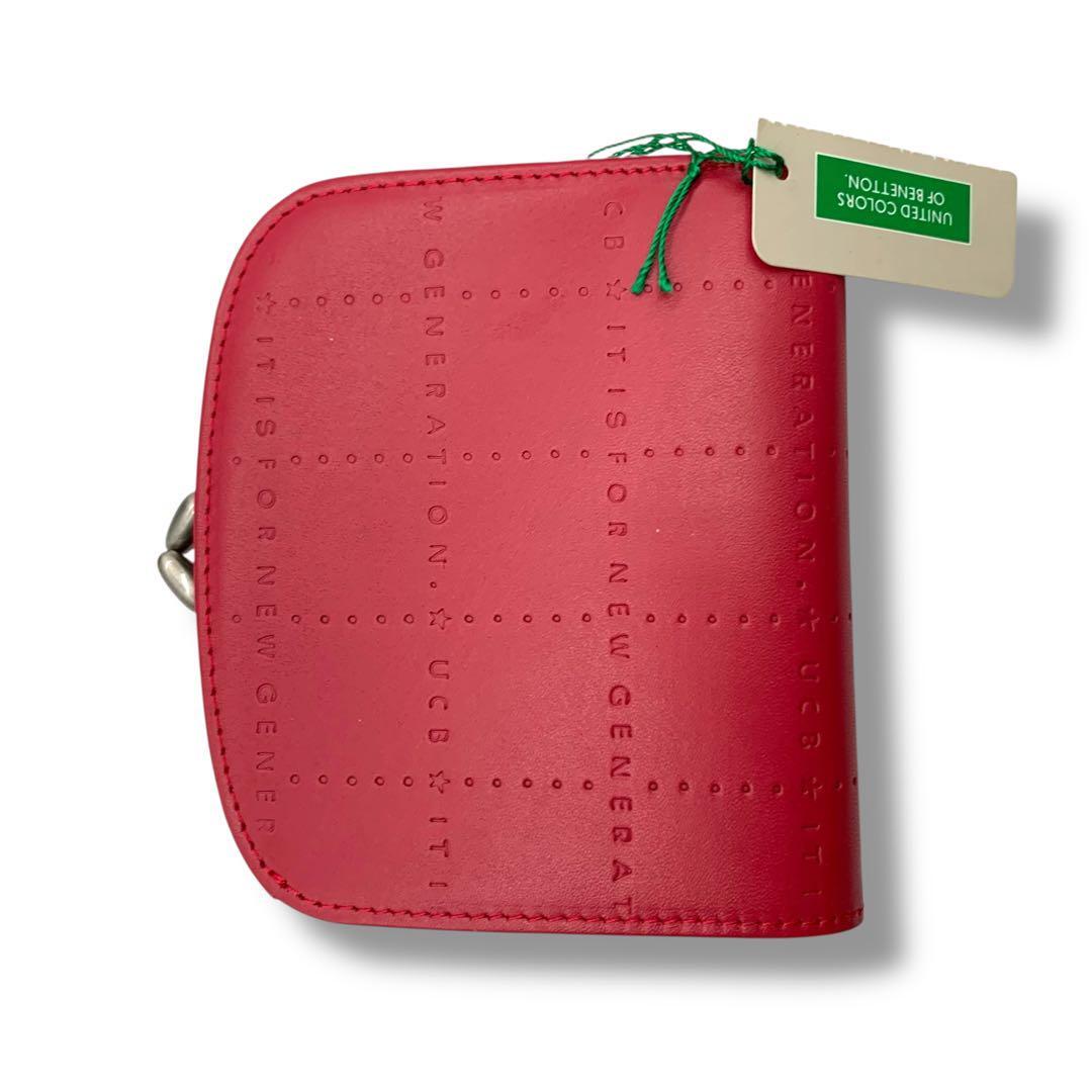 タグ付き ベネトンBENETTON財布 がま口 赤 レッド レザー