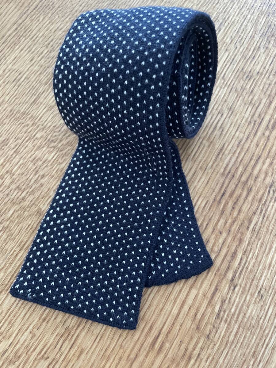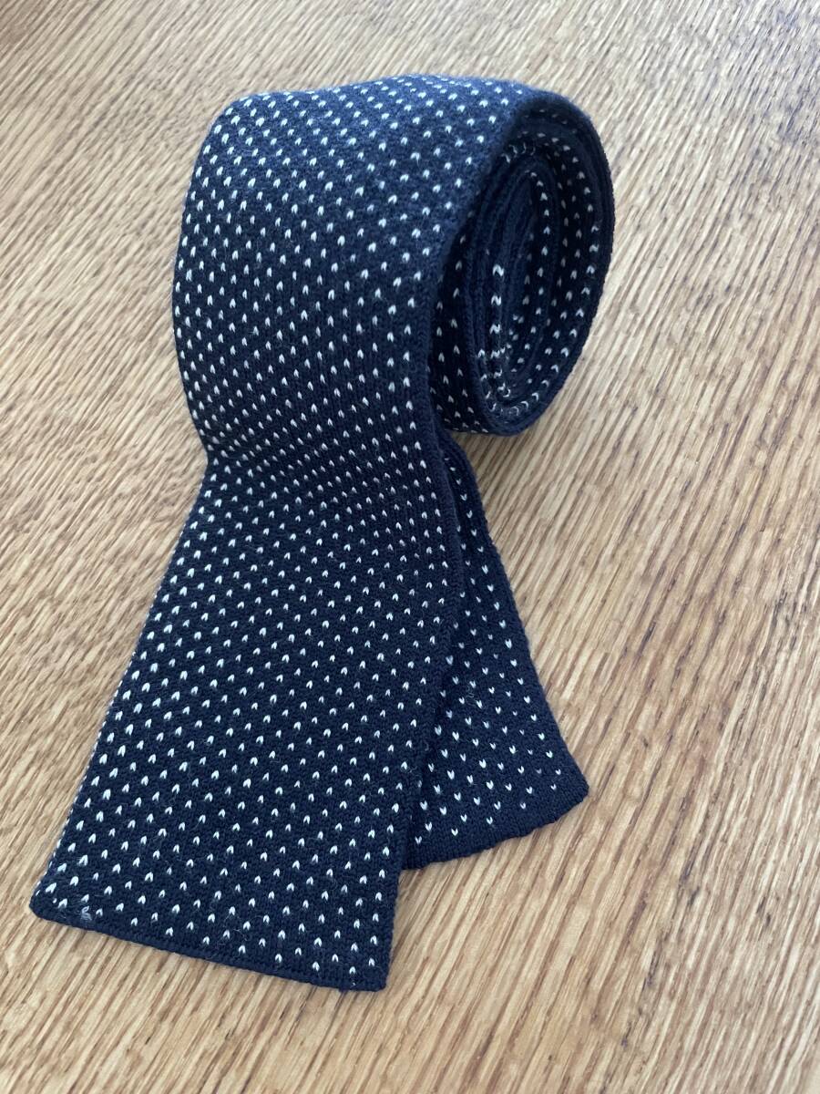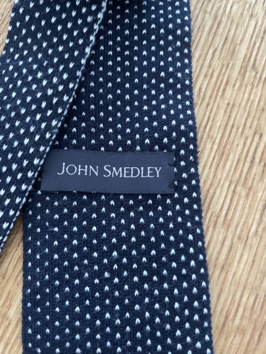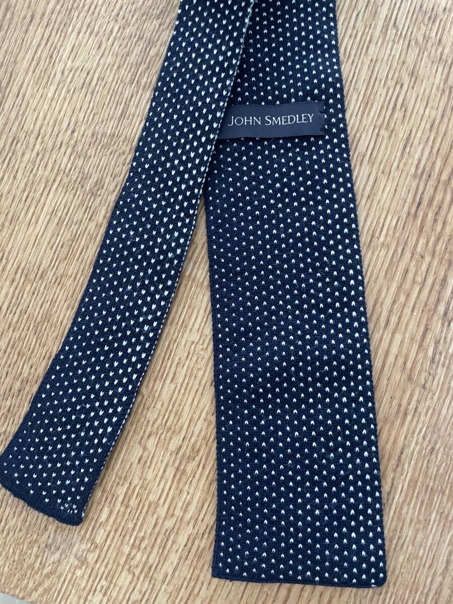 【美品】JOHN SMEDLEY ジョンスメドレー ニットタイ ネイビー ドット 英国製 高級 ネクタイ