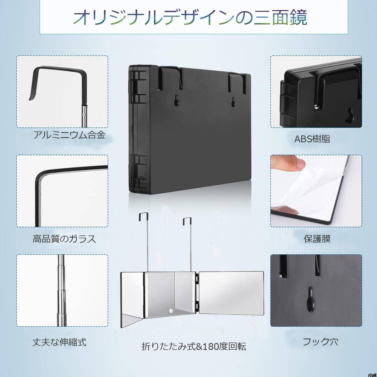 特徴:三面鏡設計で後頭部も確認可能