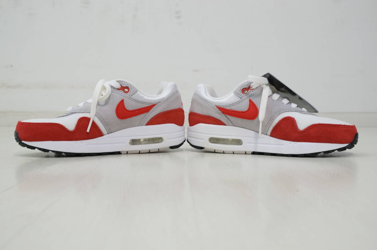 ■東ハ:未使用【NIKE】ナイキ AIR MAX 1 GS エア マックス 1 GS グレー/レッド/ホワイト 555766-146 23㎝ レディース ★送料無料★■ 1987年に天才スニーカーデザイナー「TINKER HATFIELD(ティンカーハット・フィールド)」に よって生み出されたエアマックスシリーズ。 その記念すべき1作目となる「AIR MAX 1(エアマックス 1)」は、 ヒール内部に"ヴィジブルエア"を埋め込み、クッショニングを可視化した記念すべきモデルです。 パリの"ポンピドゥセンター"からインスパイアされたデザインです。 本作は、35周年の節目を記念するにふさわしい、オリジナルをオマージュした一足が登場。 最初に「AIR MAX 1」が発売された1987年3月26日、 現行モデルよりもヴィジブルエアのウィンドウが大きい通称「BIG BUBBLE(ビッグバブル)」が量産されており、 エアユニットが低温下でひびが入りやすくなることで、ウィンドウを縮小させたバージョンを後に作り、 アップデートしていきました。 その当時の「BIG BUBBLE」をCTスキャンし、現在の技術で拡大したウィンドウを再現して復刻。 アッパーはソフトスウェードとメッシュパネルを組み合わせ、 レッド、ホワイト、グレーのアイコニックなオリジナルカラーを再現しました。 【詳細】 ・メーカー:ナイキ ・品名:AIR MAX 1 GS ・品番:555766-146 ・カラー:WHITE/UNIVERSITY RED/NEUTRAL GREY/BLACK ホワイト/チリングレッド/ニュートラルグレー/ブラック ・サイズ:23.0 cm 開封済みの未使用品となります♪ 付属品は写真にあるものが全てです。 保管に伴うシューズ底裏に薄いヨゴレがございます。 商品画像をよくご確認の上、ご参加ください。 [管理No.25090105XS] |