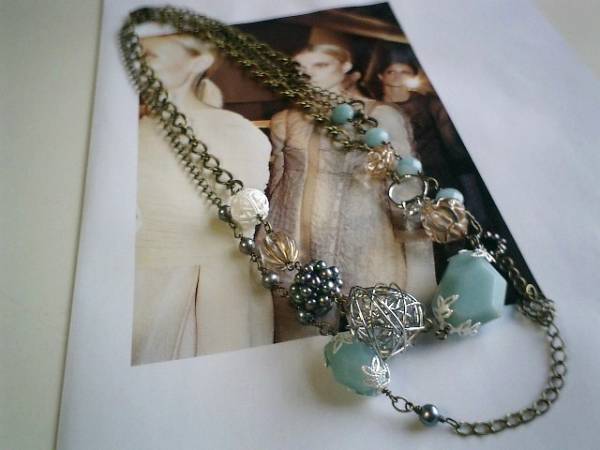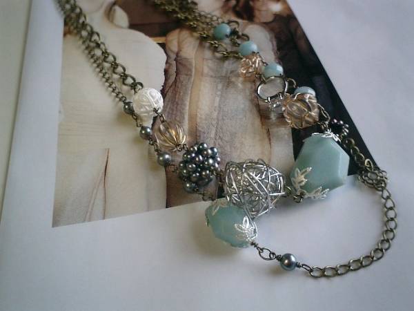 ニューヨーク・シティシリーズです♪インテリジェンスの風・・キュートなアマゾナイトとパープルグレーの淡水パールのネックレス2本セットです♪1本をネックレスに1本をブレスレットにといろいろな組み合わせで楽しんでいただけます♪シックな座金でおめかしした大きめのアマゾナイトは27×18ミリ位のラフカットです♪ジルコニアリングや透かしチャームや薔薇の樹脂ビーズや淡水パールボールをメタリックな大きめのチェーンでまとめてニューヨークモダンしています♪長さは全長56センチ位で調節自由です♪同じシックな座金でおめかしした18×12ミリ位のアマゾナイトのラフカットは5ミリの淡水パールのポテトや淡水パールリングや8ミリのアマゾナイトのカットコインを合わせました♪繊細で可憐な表情です♪長さは全長70センチ位で調節自由です♪2本とも単品でも出品しています♪お揃いのネックレスも出品しています♪シンプルで合わせやすいデザインを考えて作りました♪ハンドメイドをご理解頂いてノークレーム、ノーリターンでお願いします