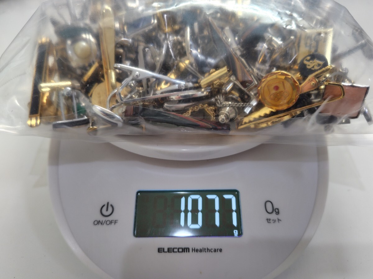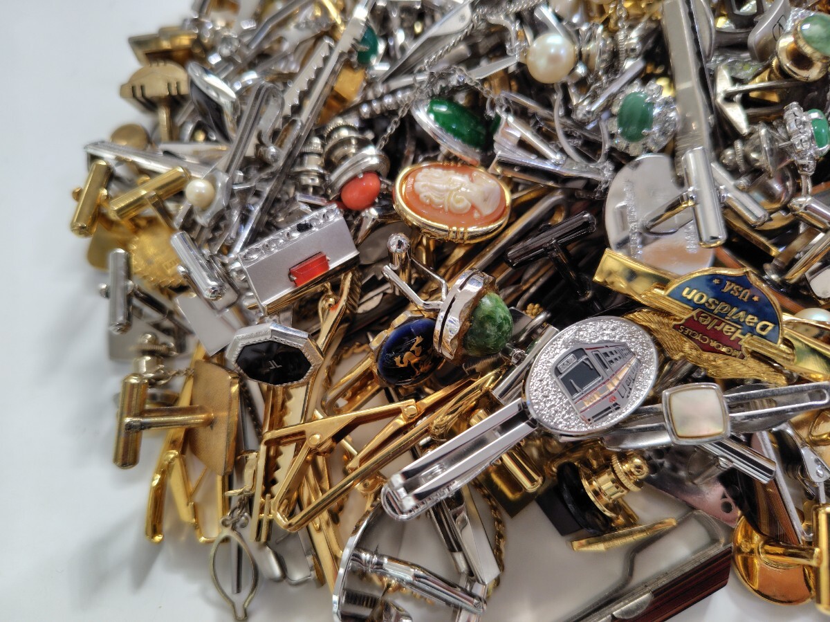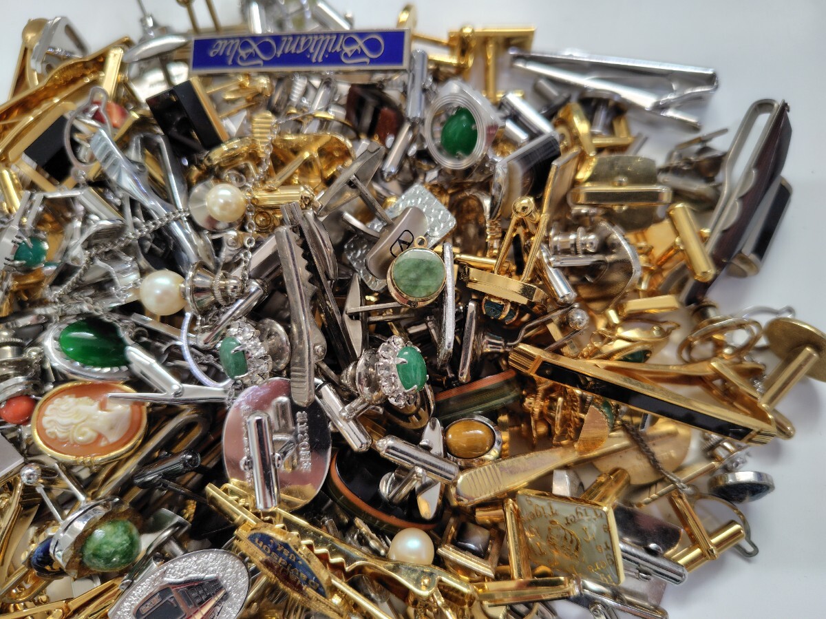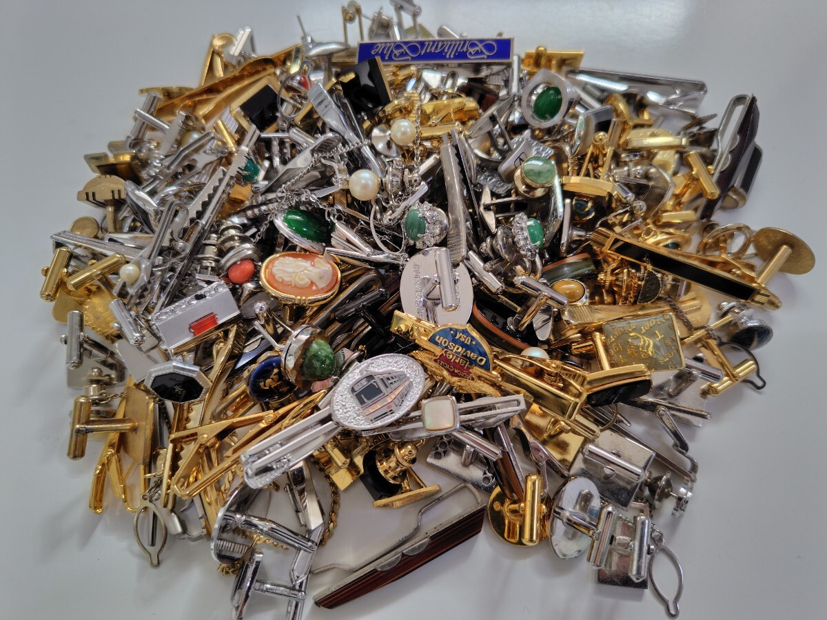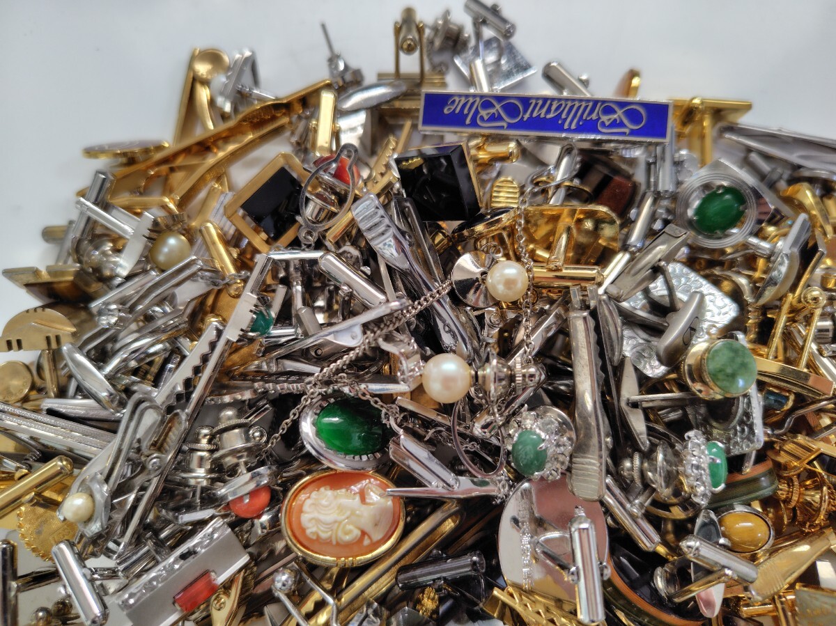 約1キロ ネクタイピン カフス ネックレス等アクセサリー 小物 シルバー、ゴールド色 大量 まとめ管理番号031