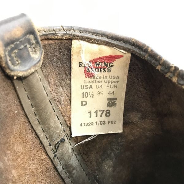 | 商品説明 | 希少/廃盤/USA製★RED WING/レッドウイング★1178/本革/ペコスブーツ【10.5D/28.0-28.5/茶】ウエスタン/Leather/Boots/shoes◆sWB121-1 (ORIGINAL TITLE) ※商品情報について※ 上部に表示されております【アイテム】・【表記サイズ】などの各項目は、商品カテゴリ振り分けの際に自動で表示される大まかな情報となっており、商品タグなどに記載されている正式な情報と一部異なっている場合がございます。 大変恐縮ではございますが、ご購入の際は下記の詳細情報や商品画像のご確認をお願い致します。 ーーーー ◆SIZE:10・1/2 D(日本サイズ28.0-28.5程度) ※採寸は画像をご確認お願い致します。 スチールトゥではないので普段使いにも活躍するウエスタンブーツです ◆商品の状態◆ ■RANK:B 状態ランク表 S新品 SA使用感がほぼ見られない美品、または未梱包の新古品 A使用感が少なく、比較的状態の良い中古品 AB使用感はあるが、気になる汚れ・傷みのない一般的な中古品 B使用感や汚れ、使用に支障のない傷みのある中古品 C目立つ汚れや傷みのある中古品 D/E補修が必要なジャンク品 状態詳細 古い品の為、多少の経年劣化、革傷、革シワはございますが、着用に難のあるダメージ等は特に見あたりません。 ※保管期間が長いのでお手数をおかけしますが、着用前にクリームなどで革のメンテナンス・お手入れをお願い致します。 また、ヒールの磨り減りはあまりなく、まだまだ履いていただけます。 (コンディションに関しましては当方の主観による判断になります。御不明な点がございましたら必ずご質問願います。慎重にチェックは行っていますが、汚れ/傷のわずかな見落とし等は中古品という事でご了承下さい。) <BUZZBERG> |