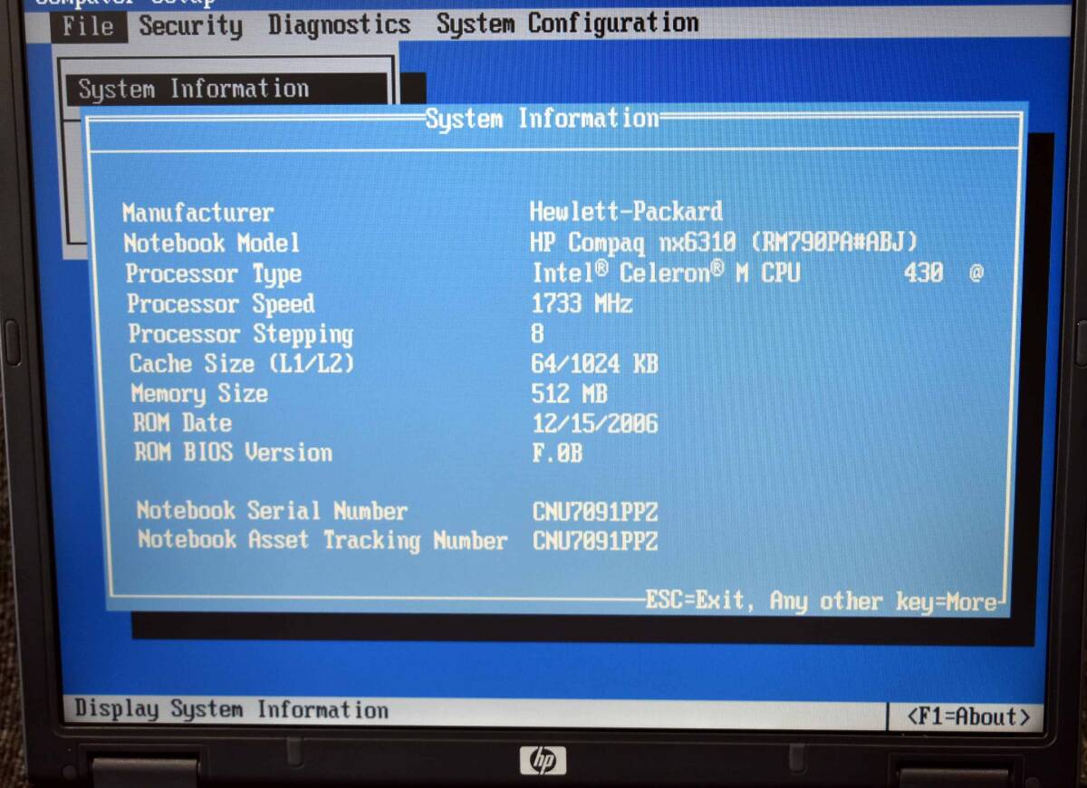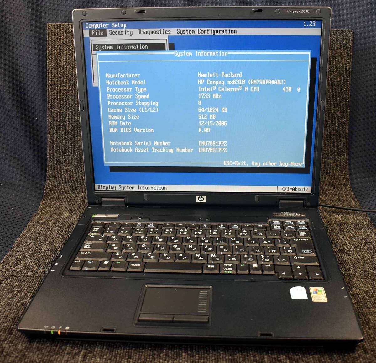 起動確認済み(ジャンク扱い) HP Compaq nx6310 CPU:Celeron M430 RAM:512M HDD:無し (管:KP974