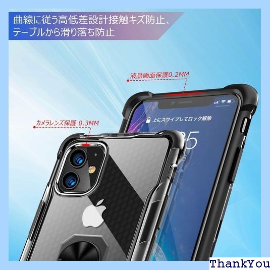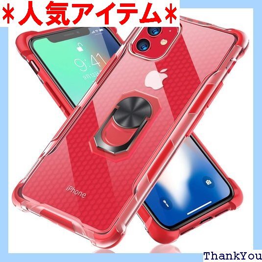 iPhone 11 ケース スマホリング 透明 耐衝撃 iPhone 11 専用 保護カバー 赤 D27-06 19