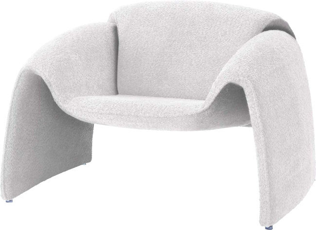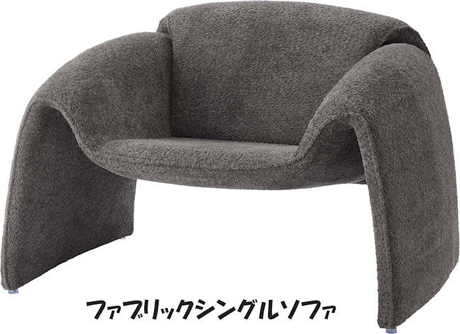 ◆優しい触り心地のブークレ生地と独創的な形状が存在感を放つソファ