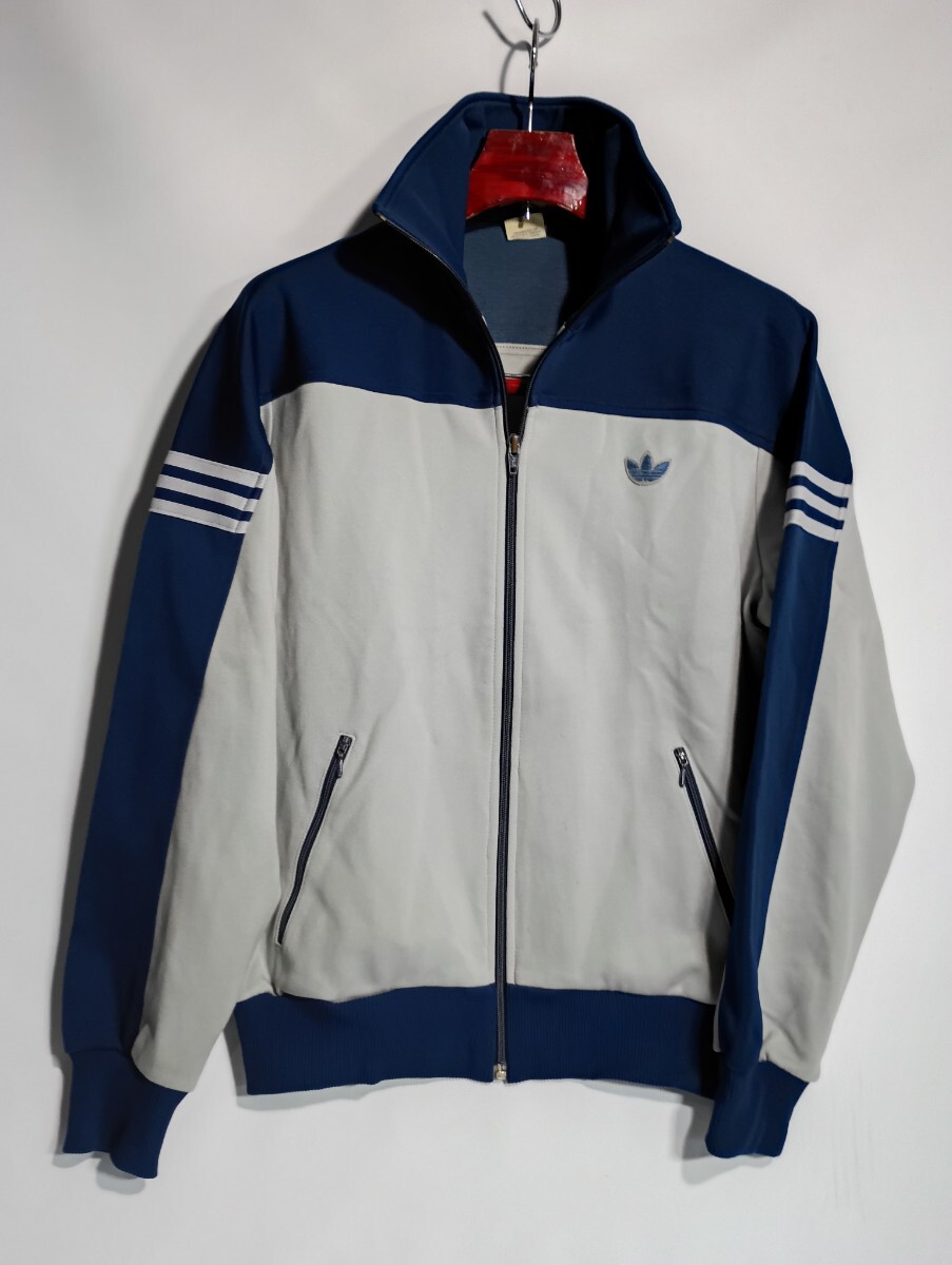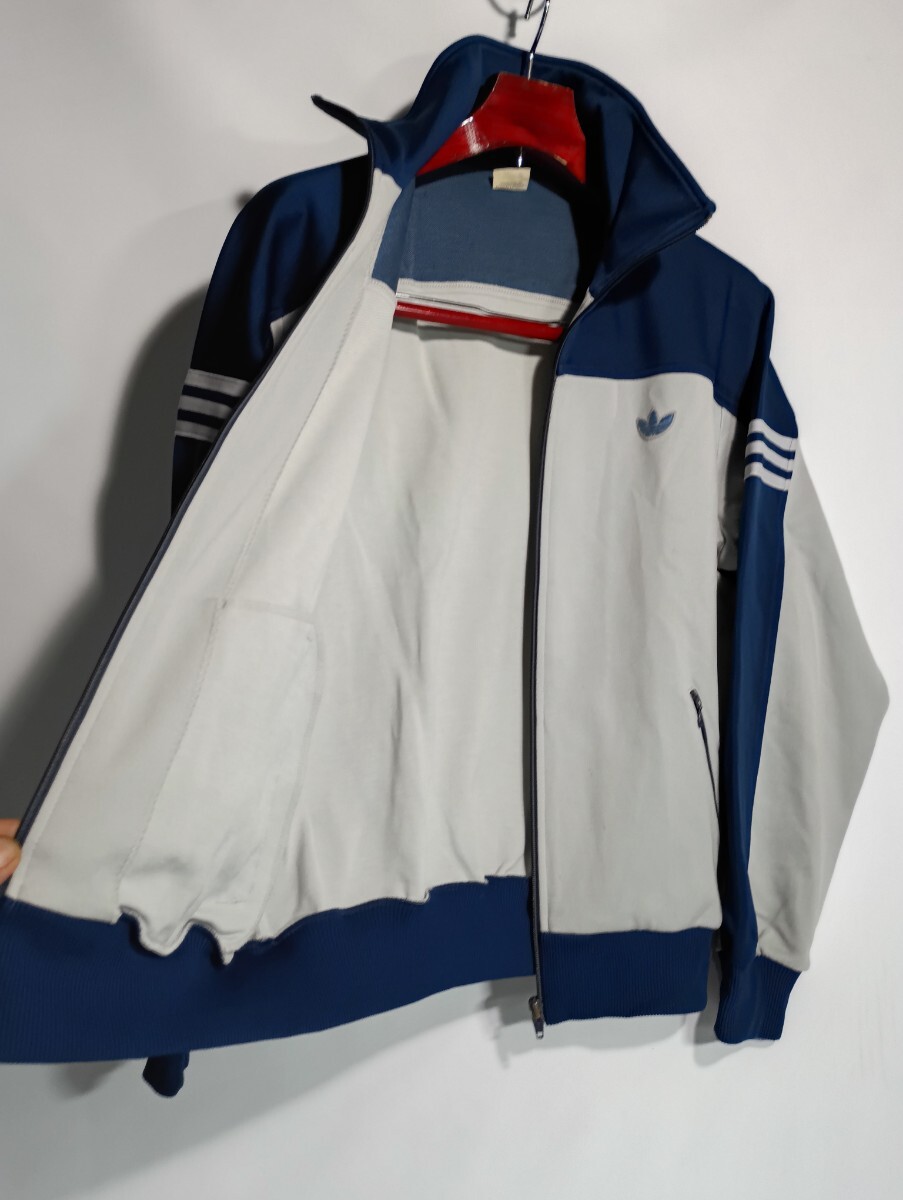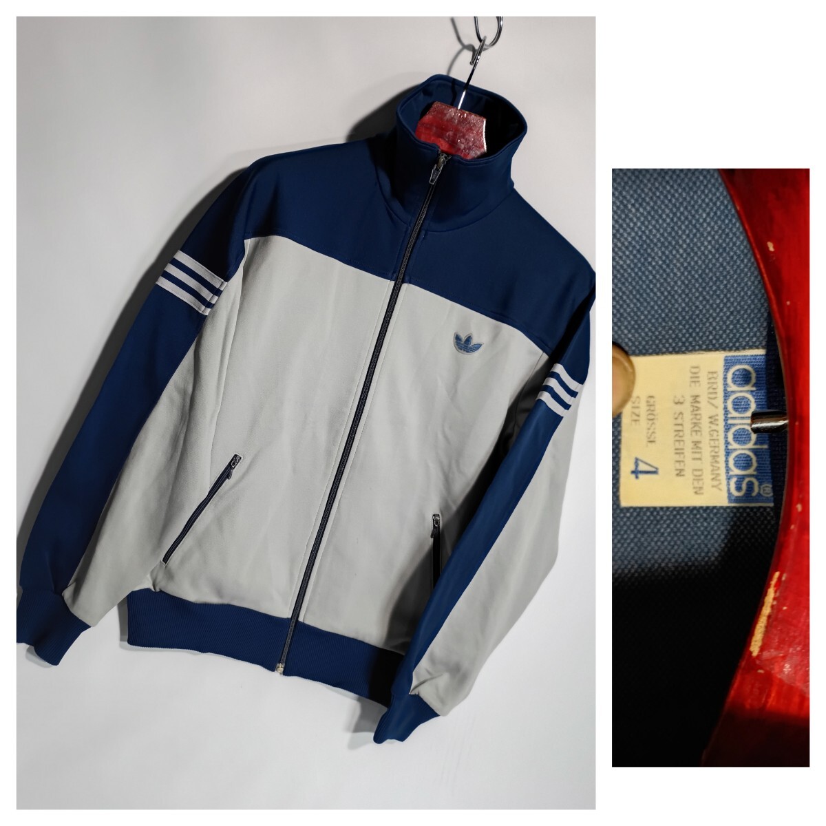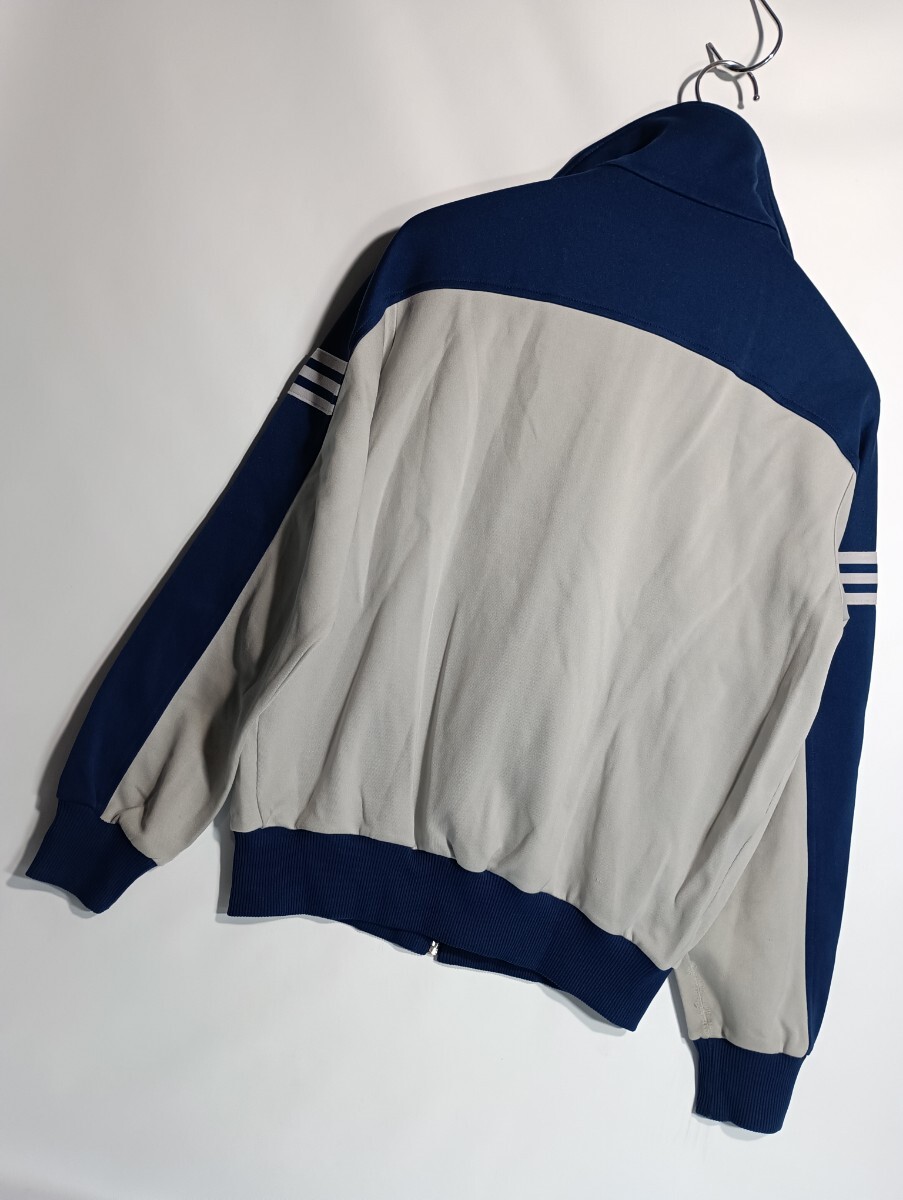 70's ヴィンテージ adidas アディダス デサント 西ドイツ製 ライトグレー×紺×白 三つ葉 トレフォイル トラックジャケット ジャージ 4