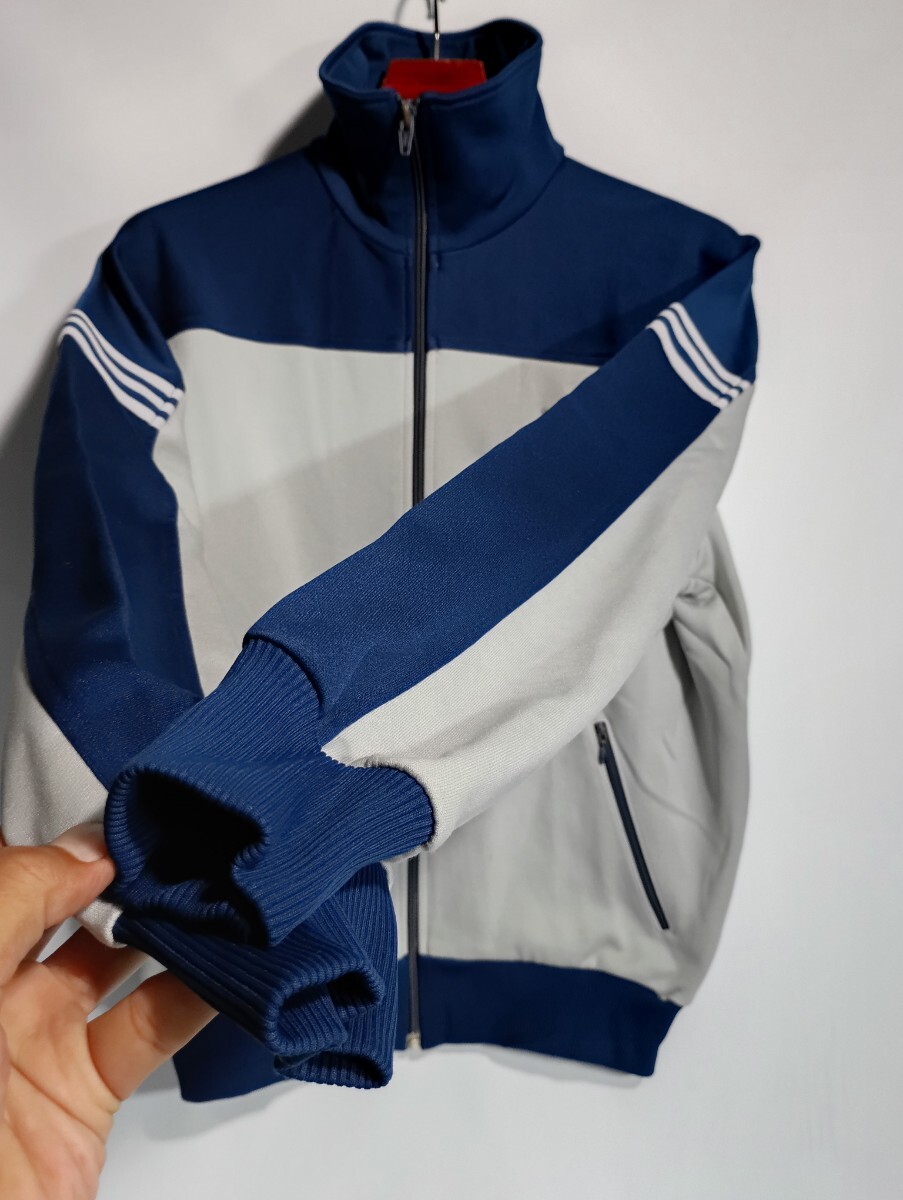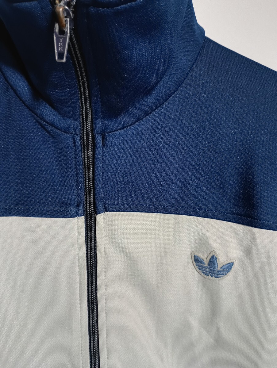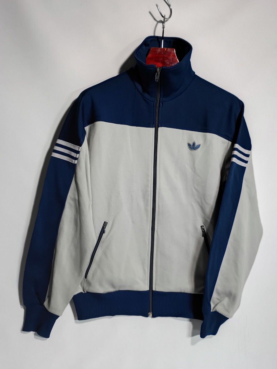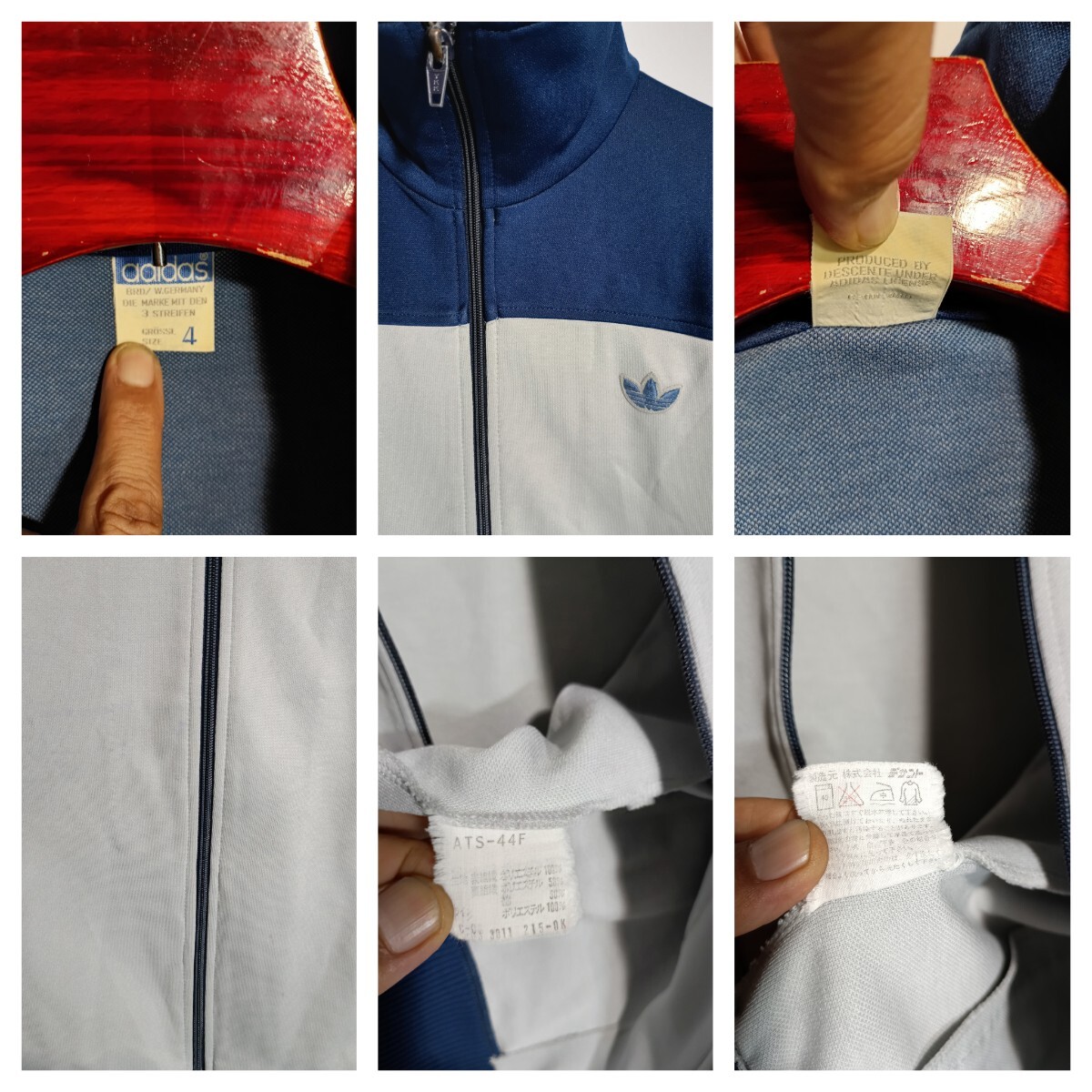 70's ヴィンテージ adidas アディダス デサント 西ドイツ製 ライトグレー×紺×白 三つ葉 トレフォイル トラックジャケット ジャージ 4