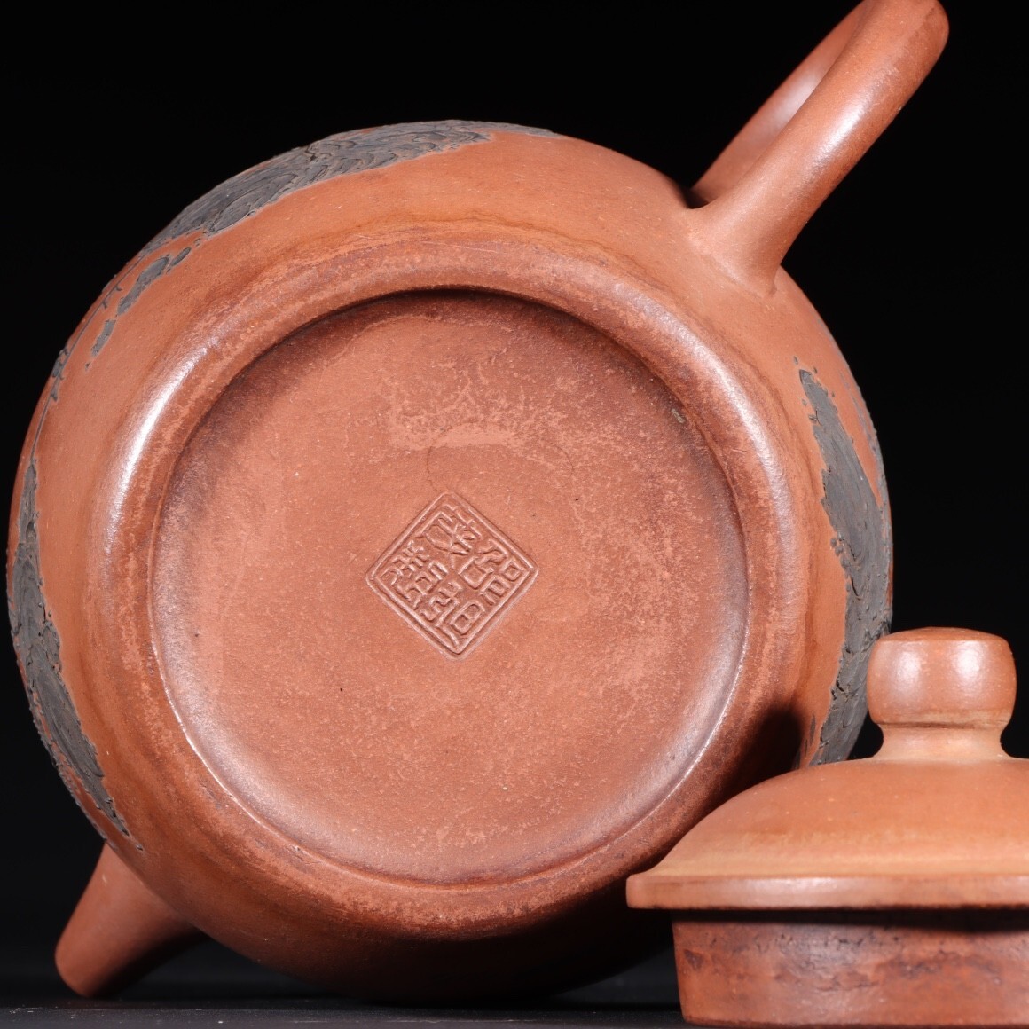 清時代 紫砂彫 泥絵山水直流圓老紫砂茶壺 邵旭茂【仁】中国陶磁器 急須 茶壷 茶道具 置物 蔵出