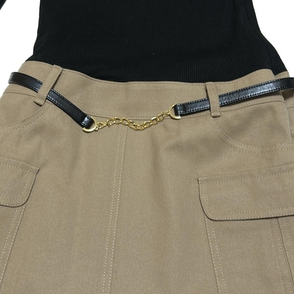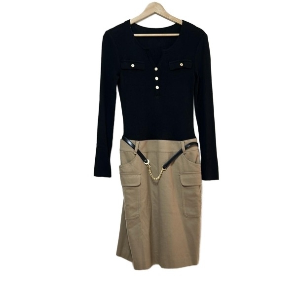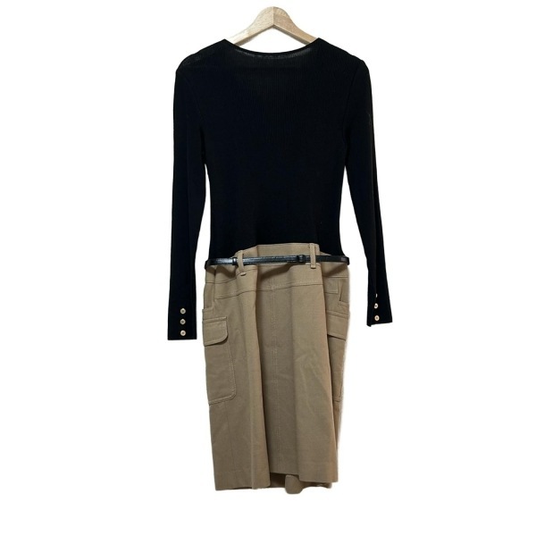 レリアン Leilian サイズ7 S - 黒×ライトブラウン レディース 長袖/ひざ丈 ワンピース