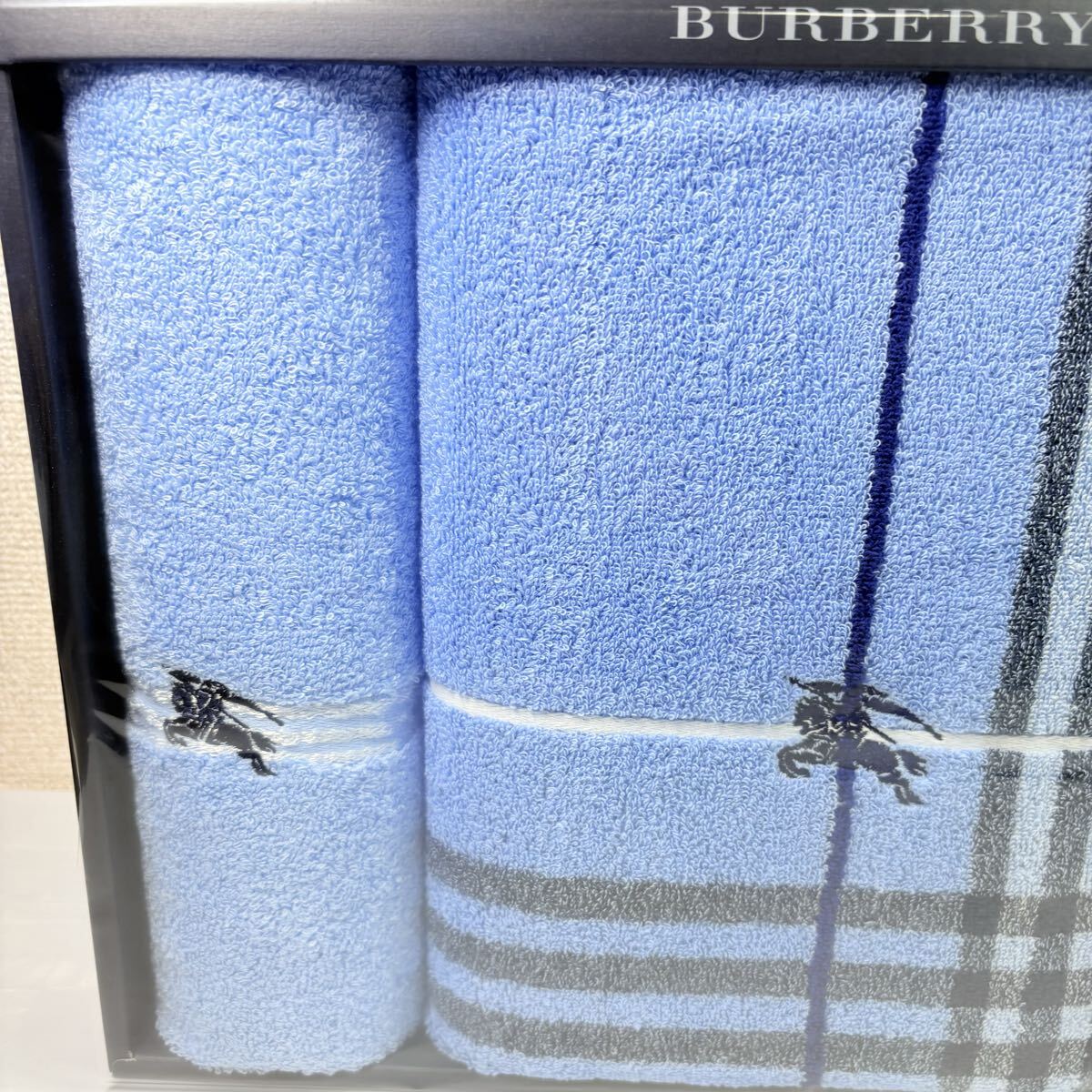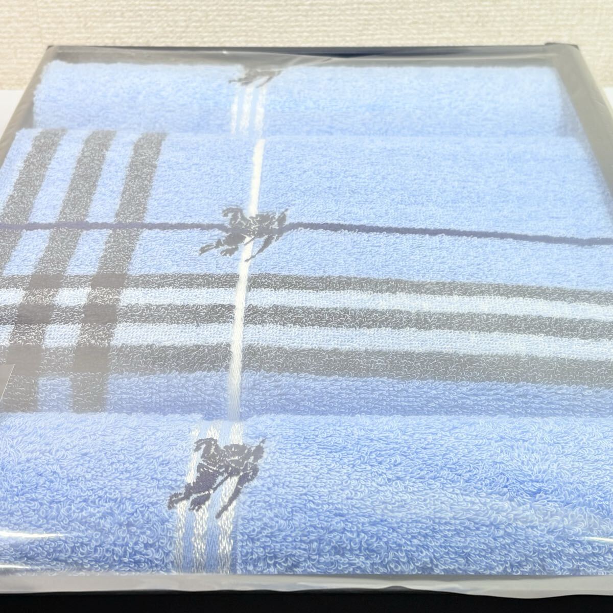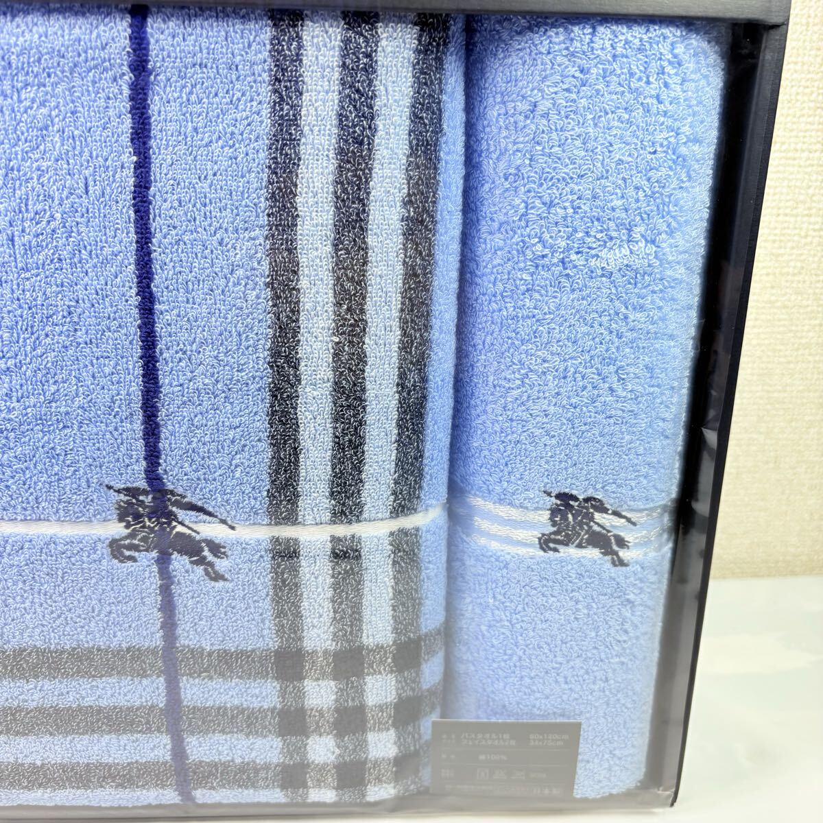 美品未使用 BURBERRY バーバリー バスタオル フェイスタオル2枚 ブルー ノバチェック 西川産業 日本製