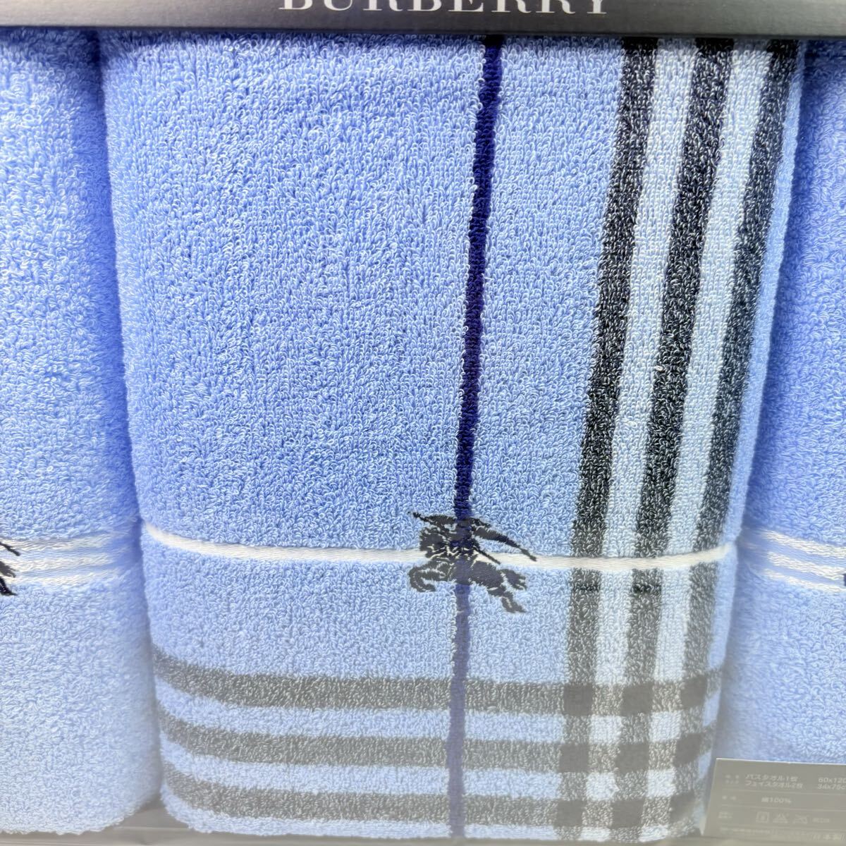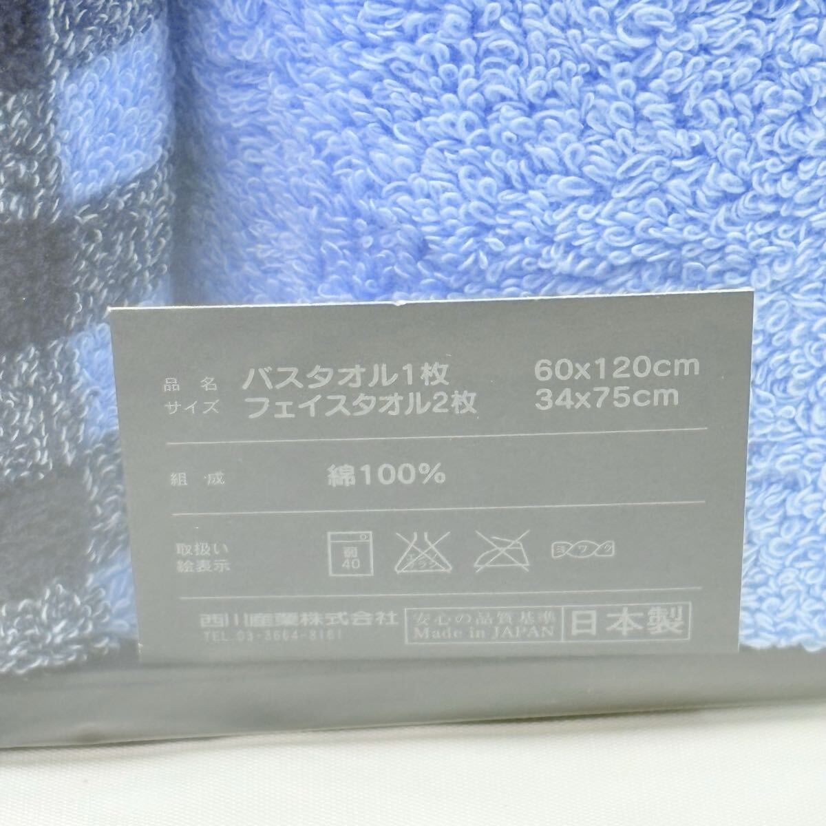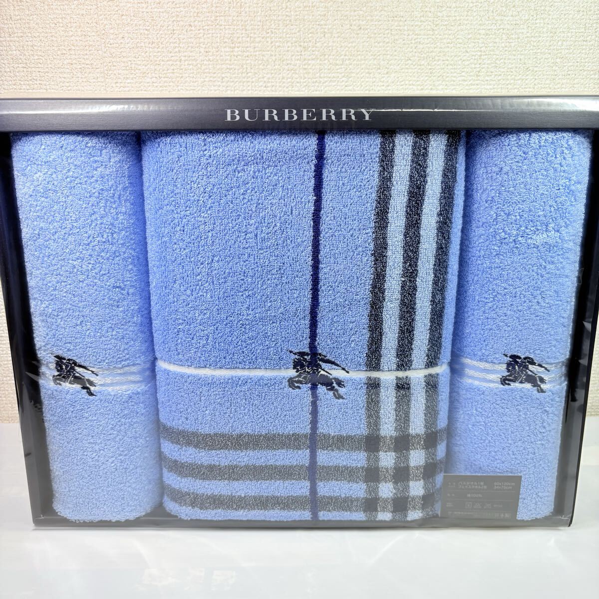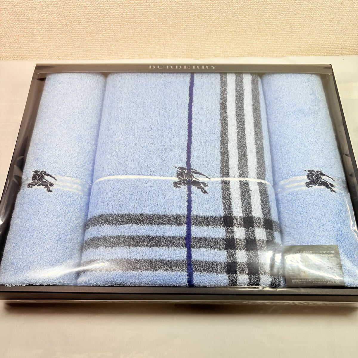 美品未使用 BURBERRY バーバリー バスタオル フェイスタオル2枚 ブルー ノバチェック 西川産業 日本製