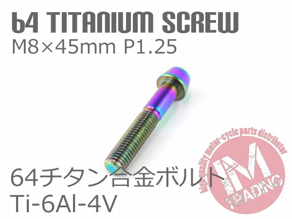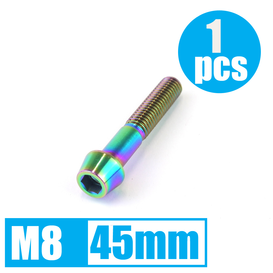 64チタン合金ボルト M8×45mm P1.25 テーパーキャップ ゆうパケット対応 焼き色有り Ti-6Al-4V