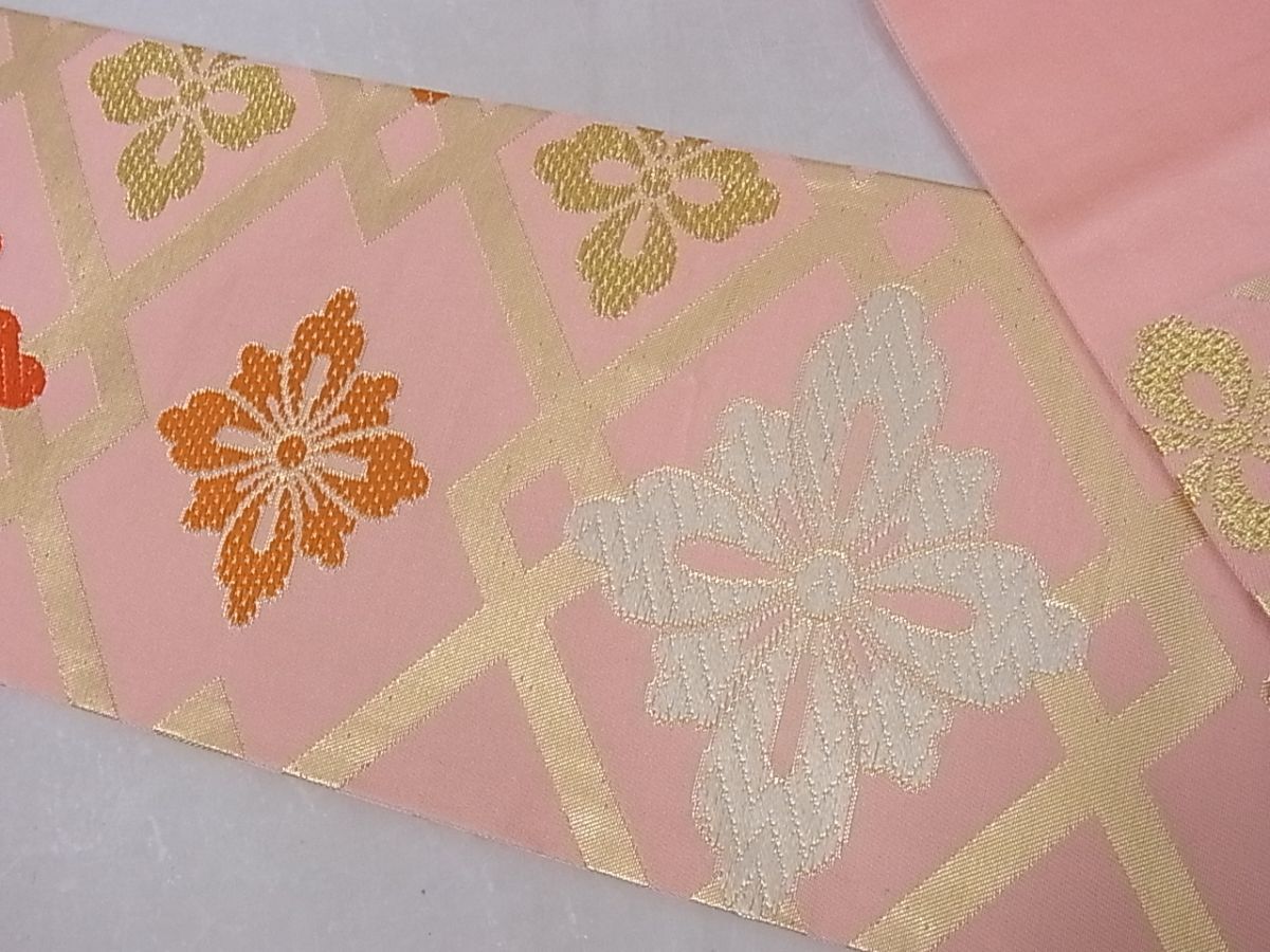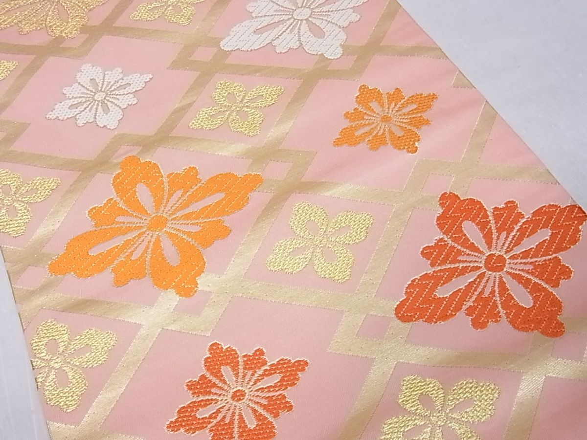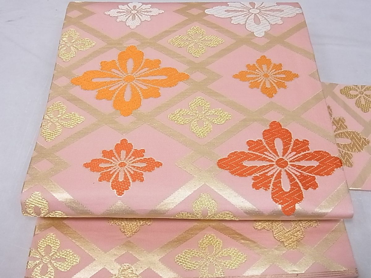 eふれんず◆【西陣 川島織物謹製】九寸名古屋帯 唐織 花菱文 金糸 正絹 美品◆bm1565