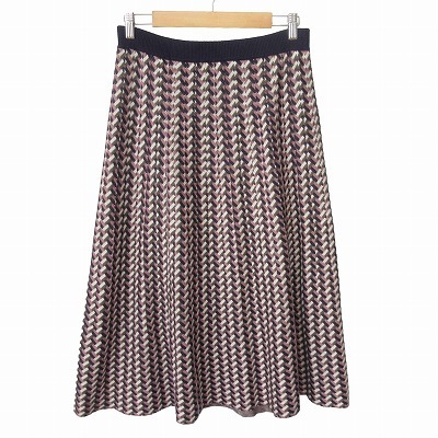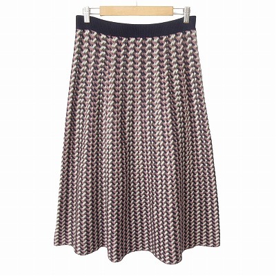 エムケー ミッシェルクラン MK MICHEL KLEIN レトロ幾何柄ジャカードニットフレアスカート 洗える 38 ピンク レディース