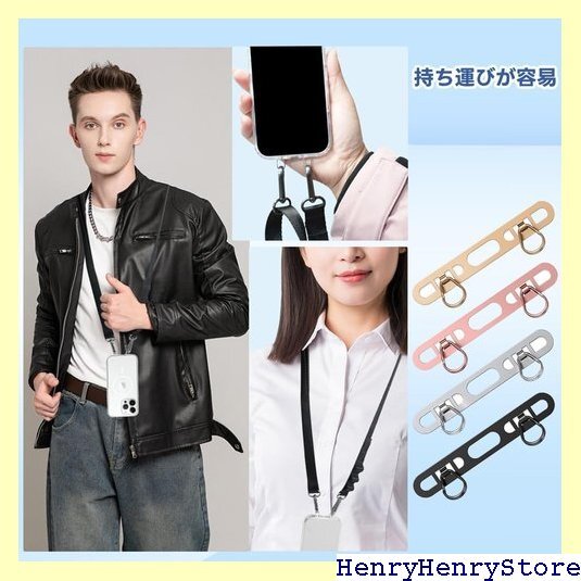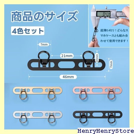 【4色セット】スマホのストラップを安心して楽しめるストラップホルダー4点セットが登場。 サイズ:46x7mm、厚さ0.4mm、カラー:シルバー、ブラック、ローズゴールド、シャンパン。 様々な携帯ケースにマッチします。