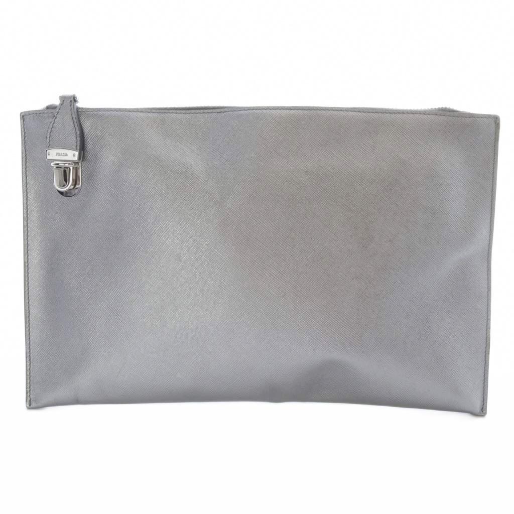 プラダ PRADA サフィアーノ クラッチバッグ レザー シルバー色 BP868T /SR ■OH レディース