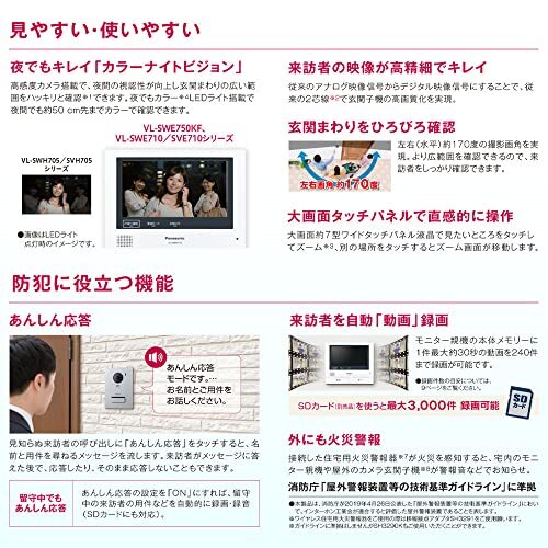 商品説明 | 【商品仕様】 [玄関子機]サイズ:9.9×2.7×13.1?/重量:180g/電源:モニター親機より供給/使用環境条件:周囲温度マイナス10-50℃、湿度90%以下 【特徴】テレビドアホン用カメラ玄関子機(露出型用)です。高感度カメラ搭載で、夜間の視認性が向上し玄関まわりの広い範囲をハッキリと確認できます。カラーLEDライト搭載で夜間でも約50m先までの距離をカラーで確認可能です。デジタル映像信号で従来の2芯線で玄関子機の高画質化を実現しました。左右水平約170度の撮影画角で広範囲の映像がしかっりと確認できます。