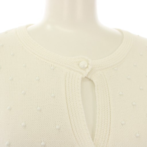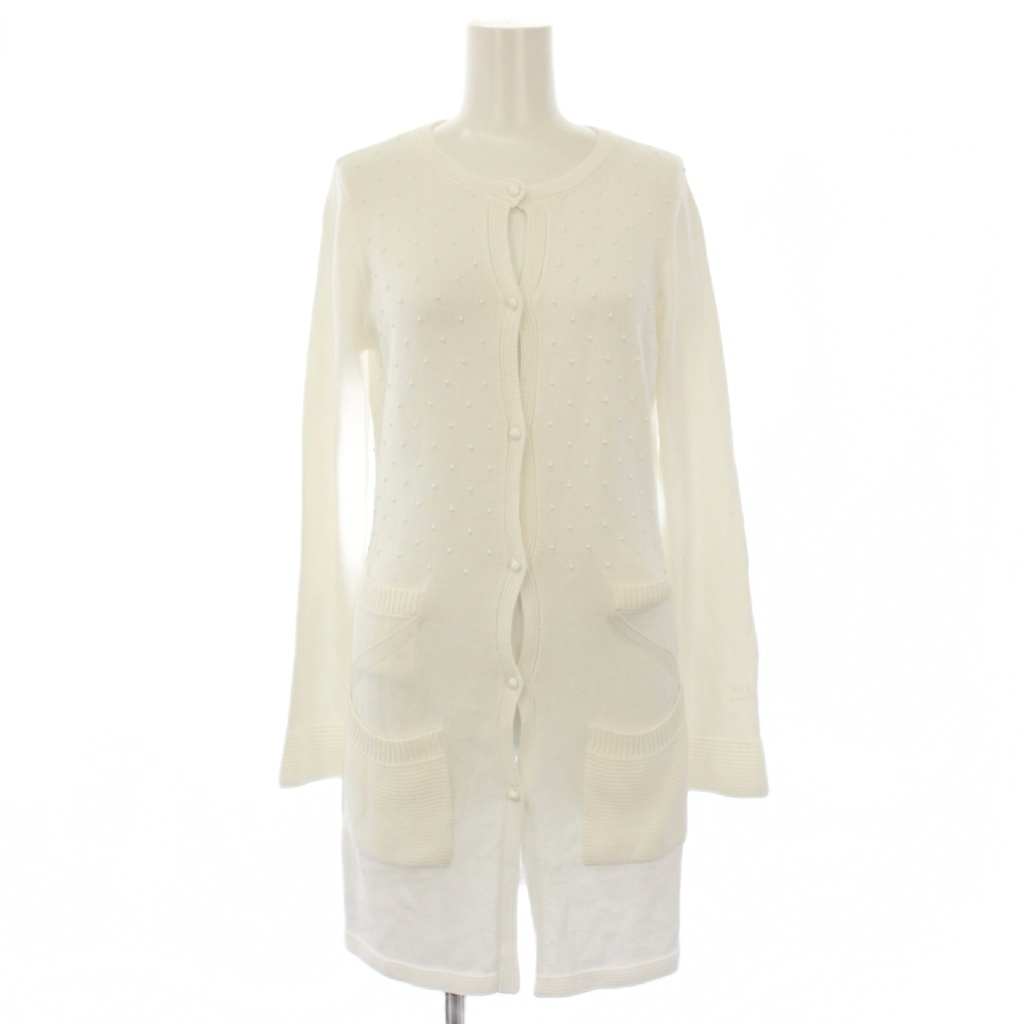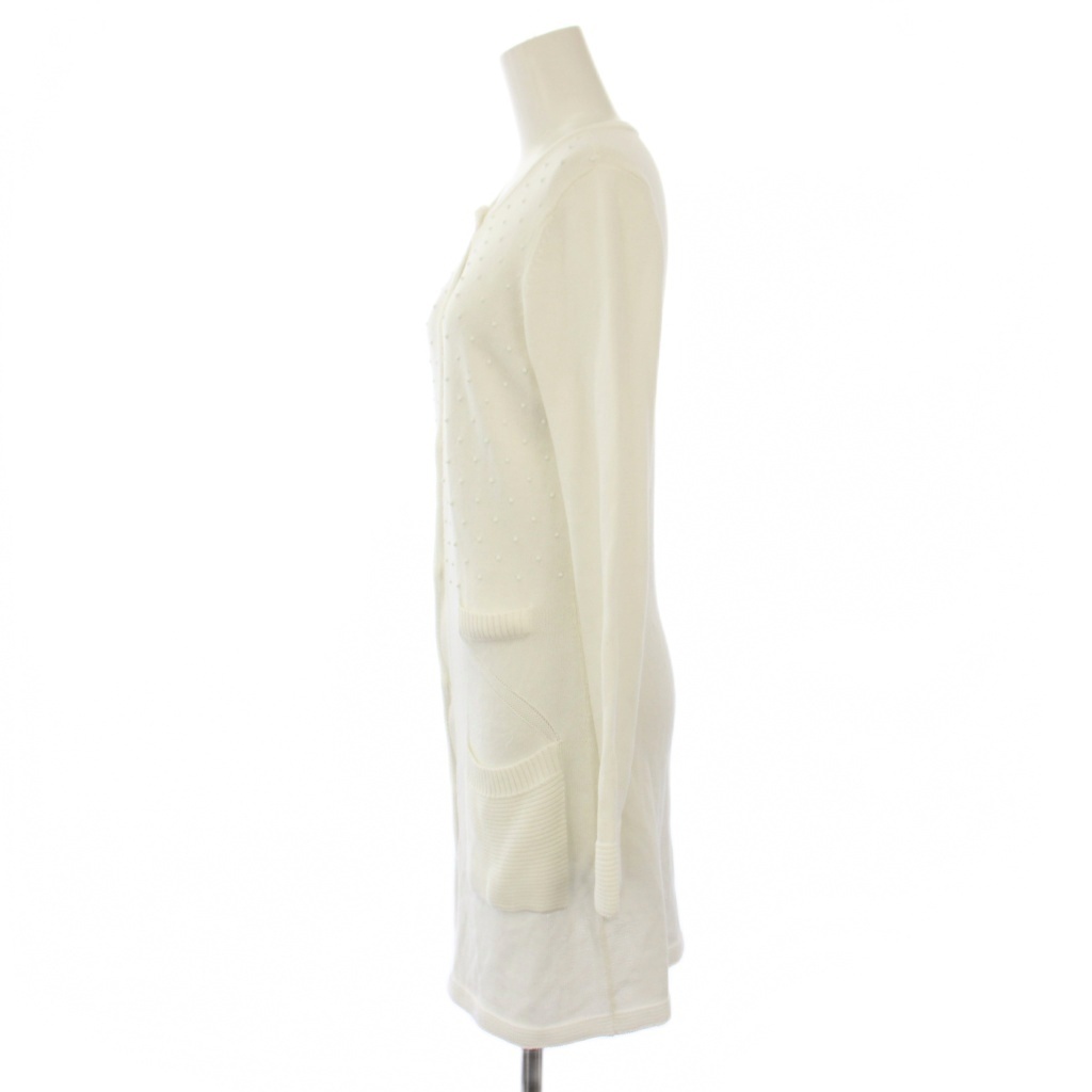 フォクシー FOXEY Tb16 ロングカーディガン ニット 長袖 ビーズ 38 白 34281 /TK レディース