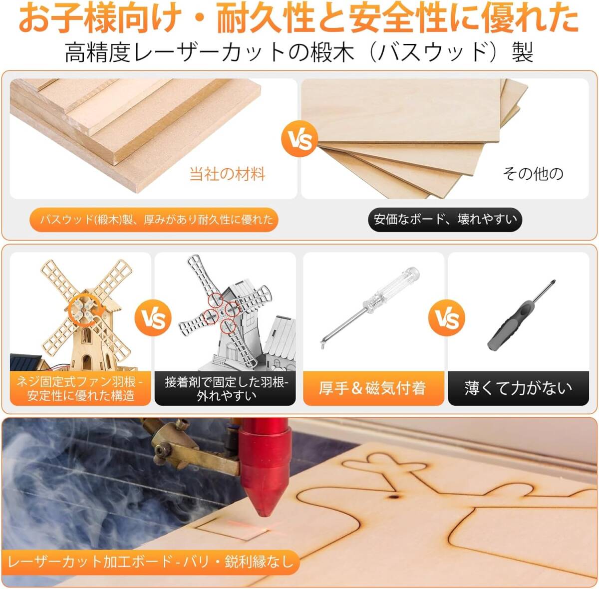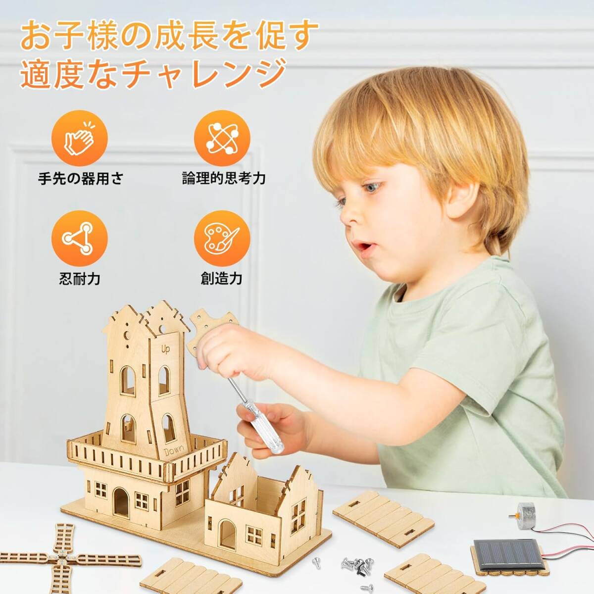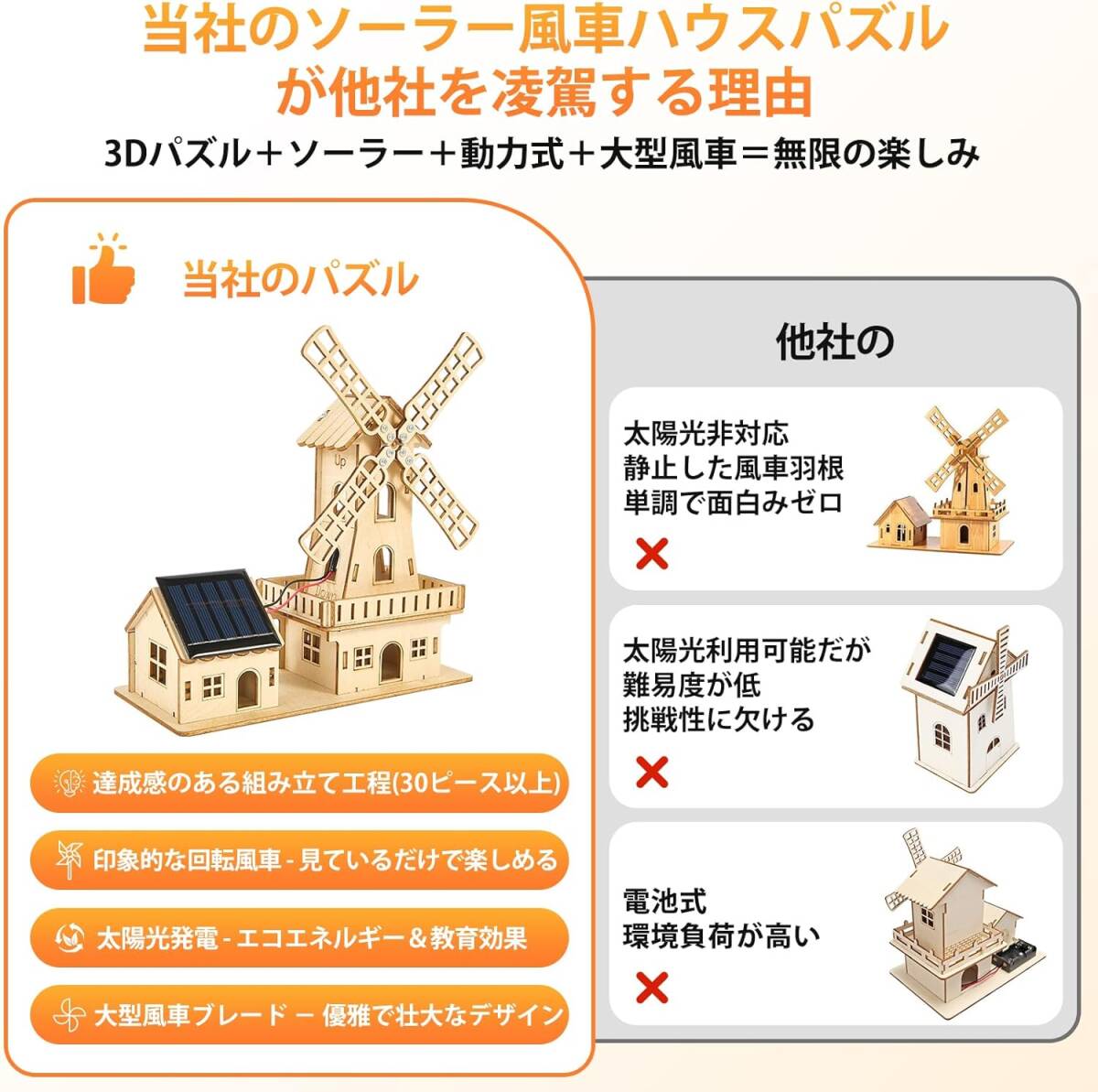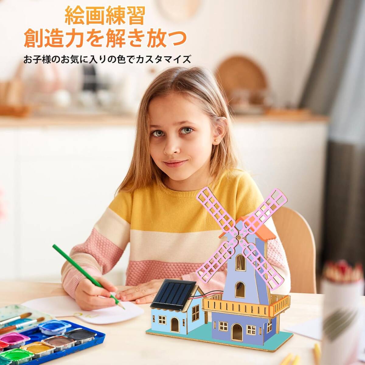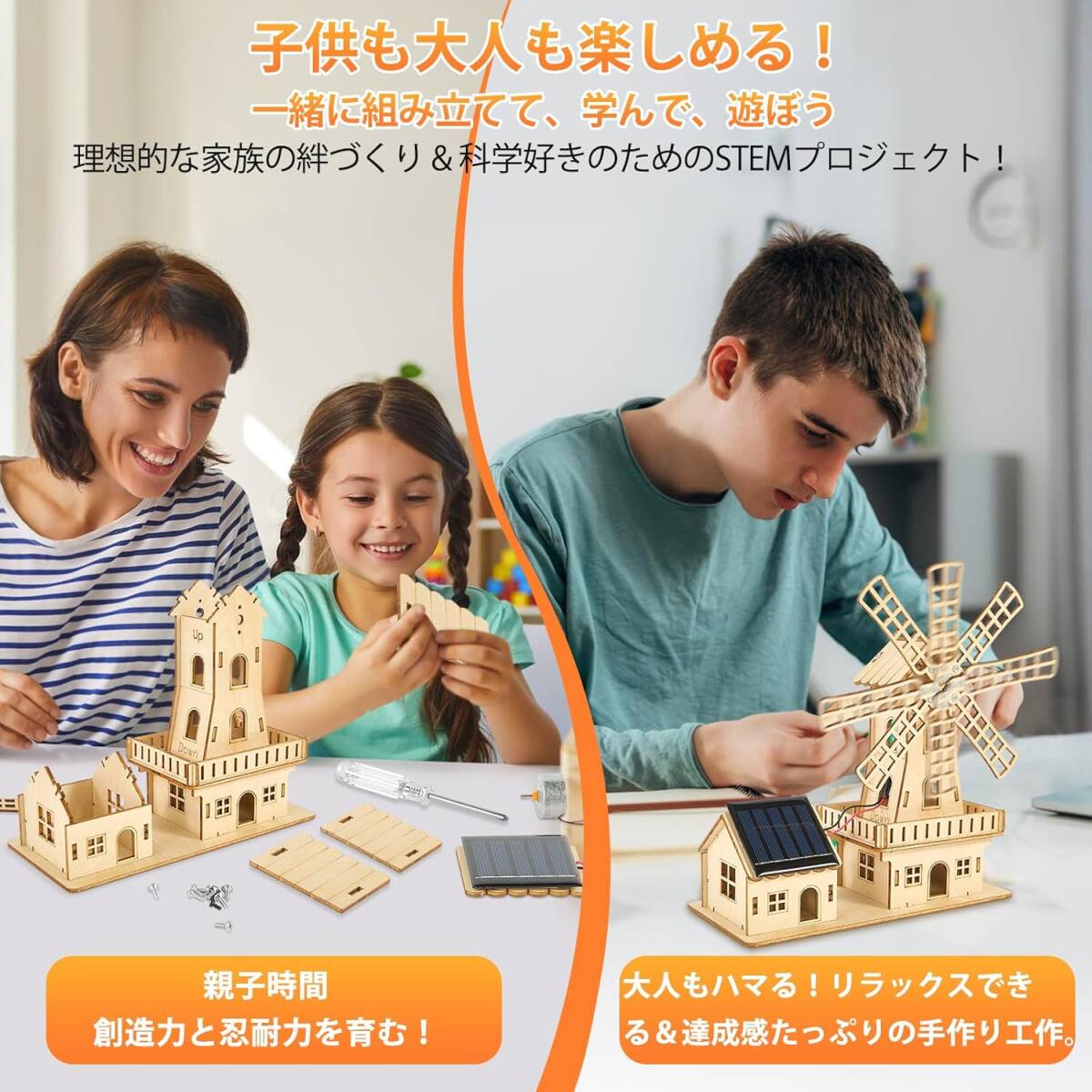 楽しい自由研究 太陽光発電 3D木製パズル、ソーラー風車小屋のDIY組み立て玩具、教育科学工作キット