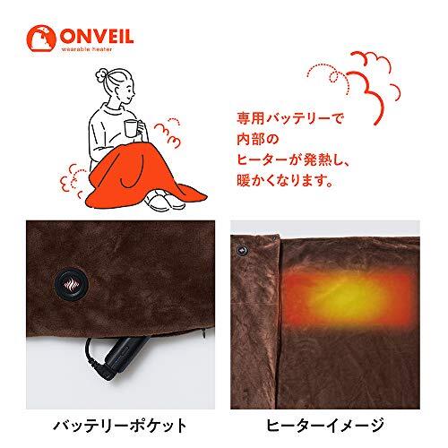 | 商品説明 | 暖かさをONにする。ウエアブルヒーター ONVEIL(オンベイル)。 ヒートブランケット。スイッチONでいつでも暖かい、モバイル電熱ヒーター。持ち運べるウェアラブルな暖かさを。 専用バッテリーで内部のヒーターが発熱し、暖かくなります。 ヒーター内蔵、ヒーターが取り外せるので丸洗いOK。素材:ポリエステル100% 軽量バッテリー付き、最大6時間使用可能、3段階温度調節。